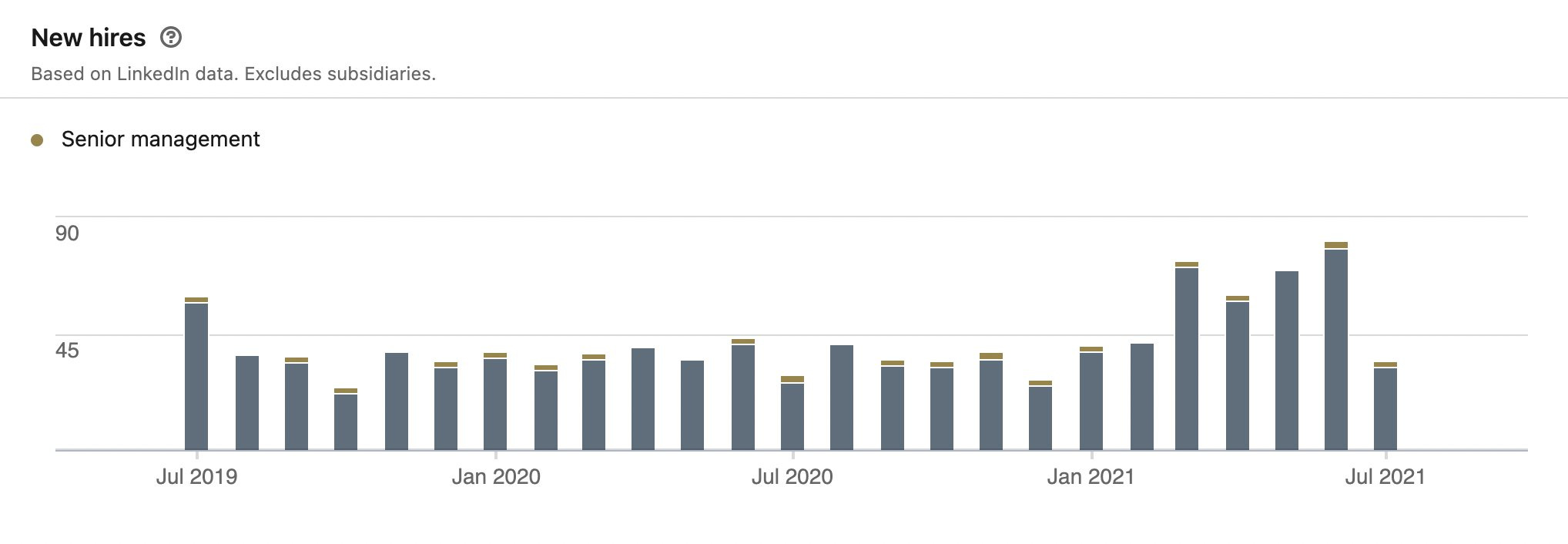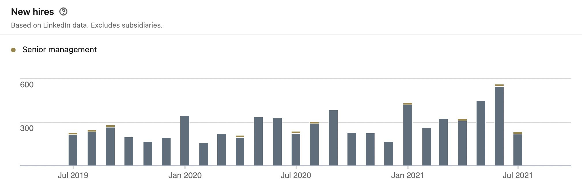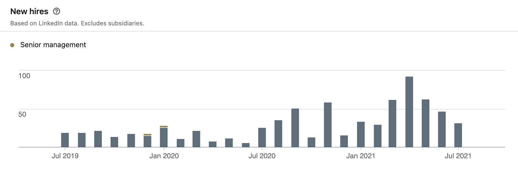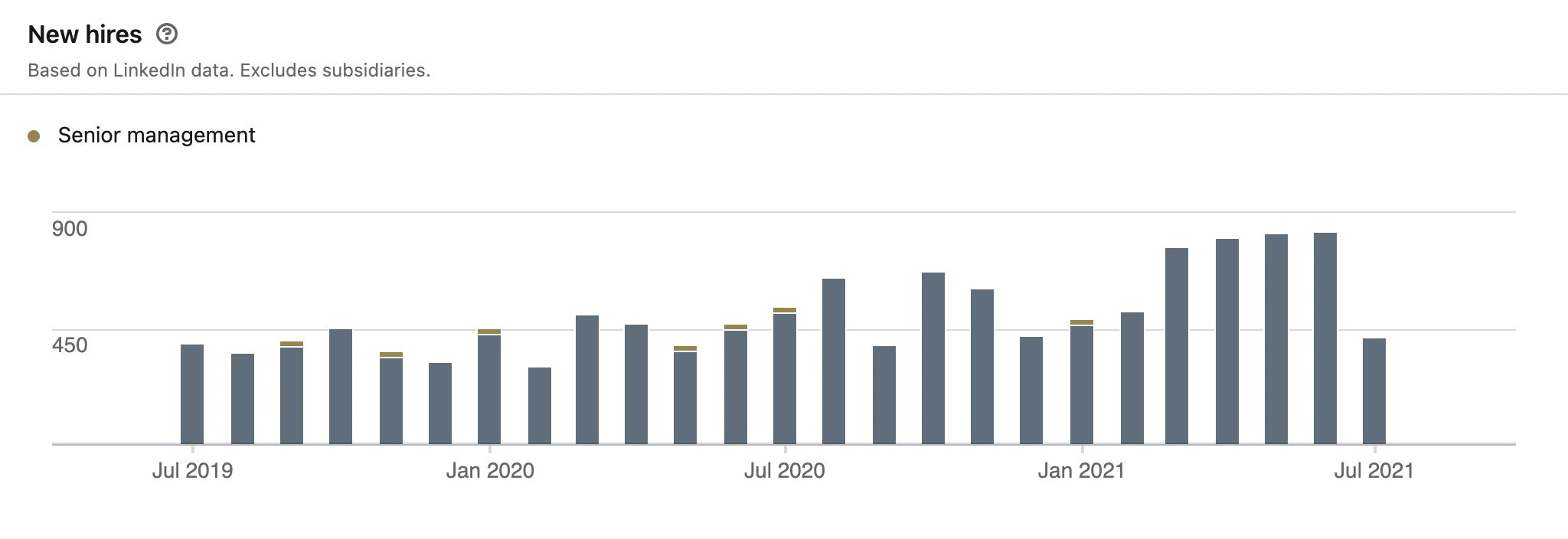 Steady rate of new hires over the last 18 months with a big increase last summer