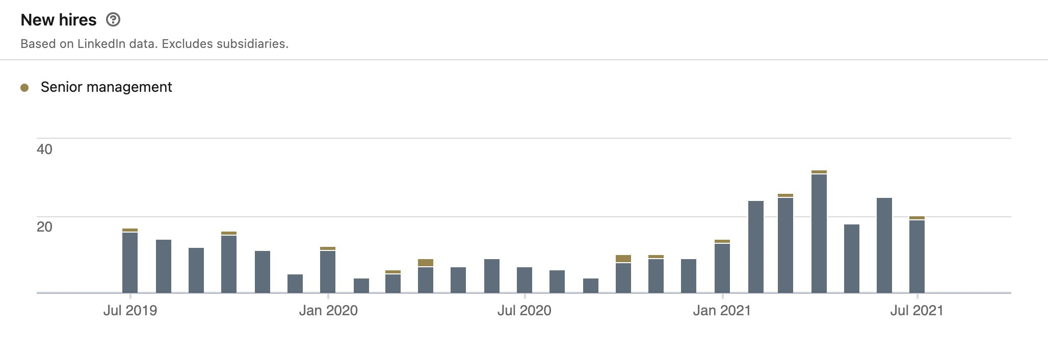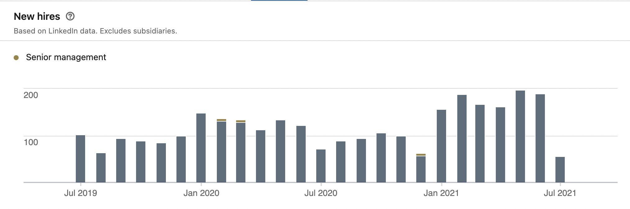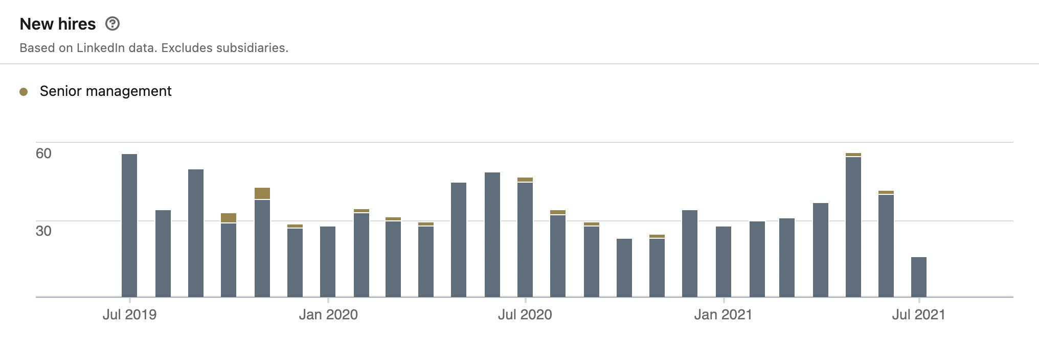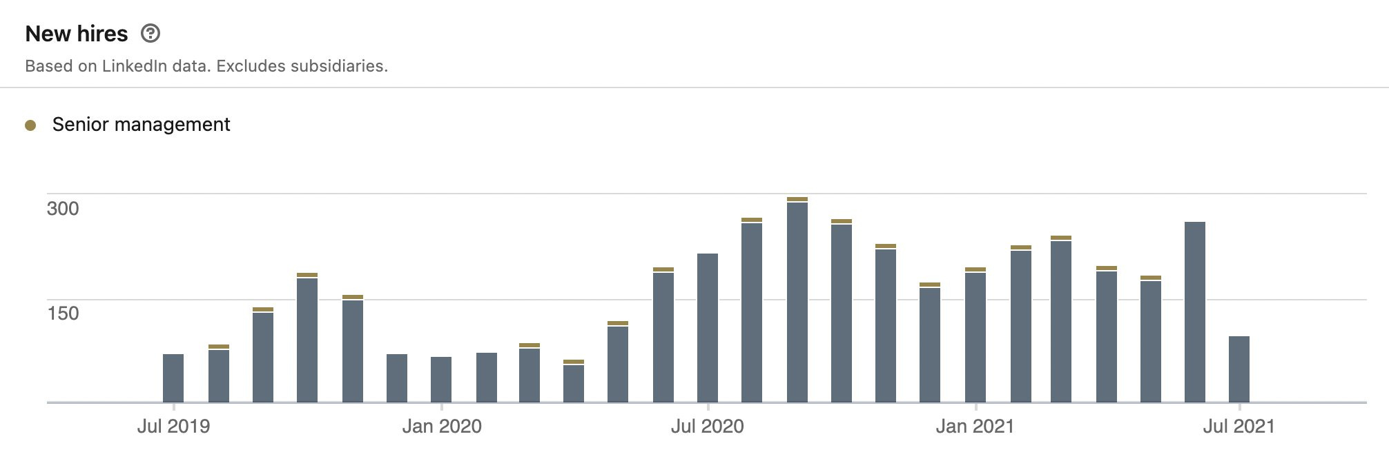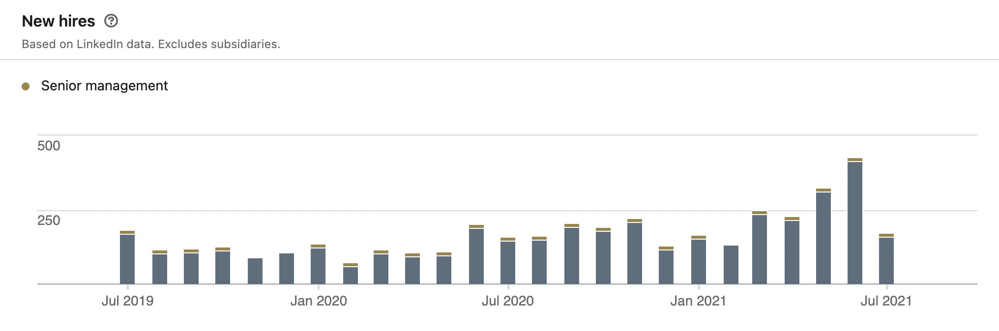 Steady rate of new hires over the last 18 months with a big increase last summer