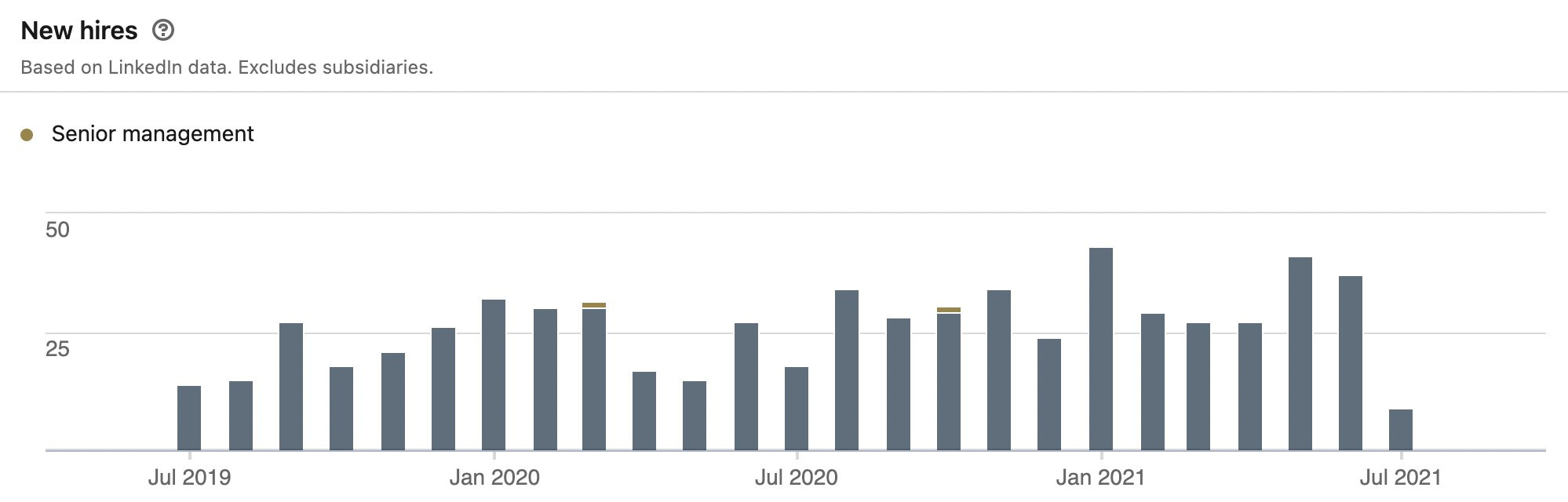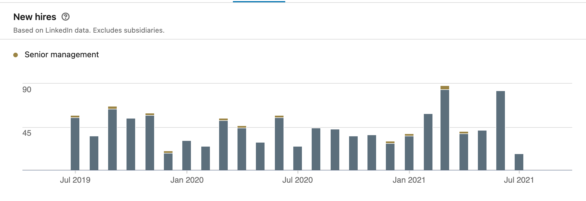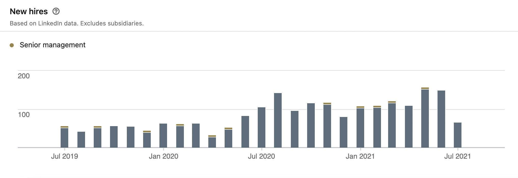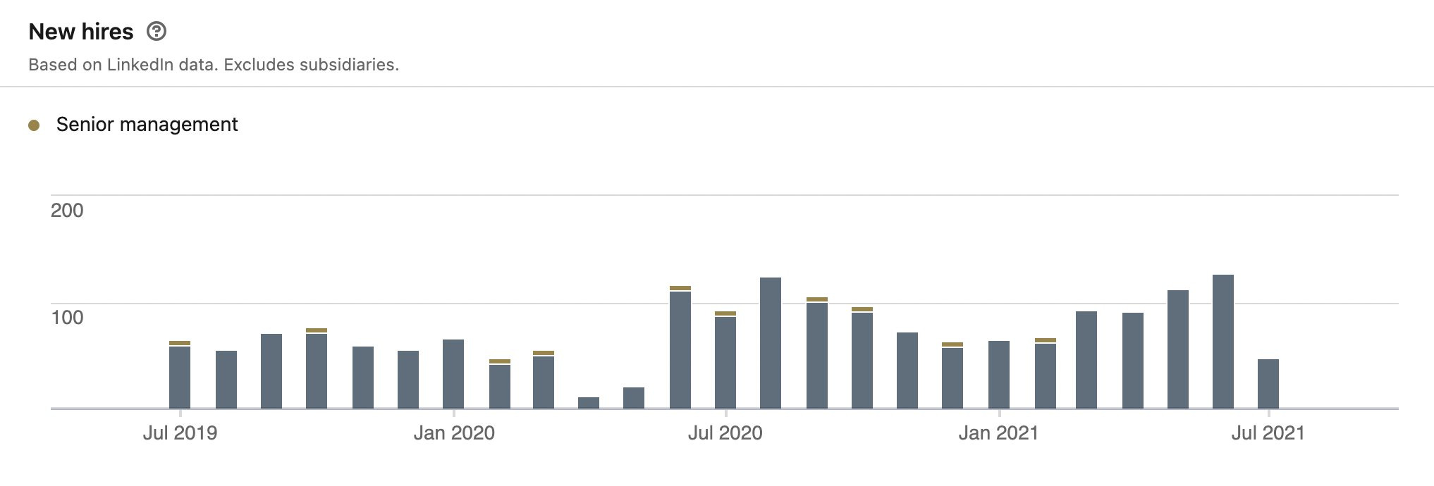 Steady rate of new hires over the last 18 months with a big increase last summer