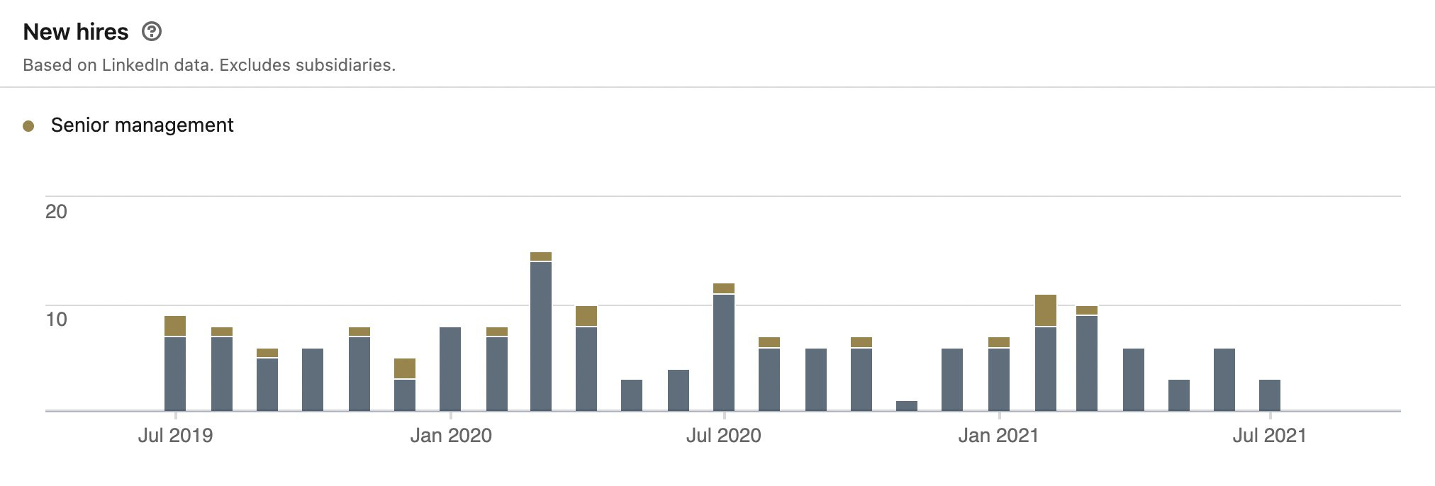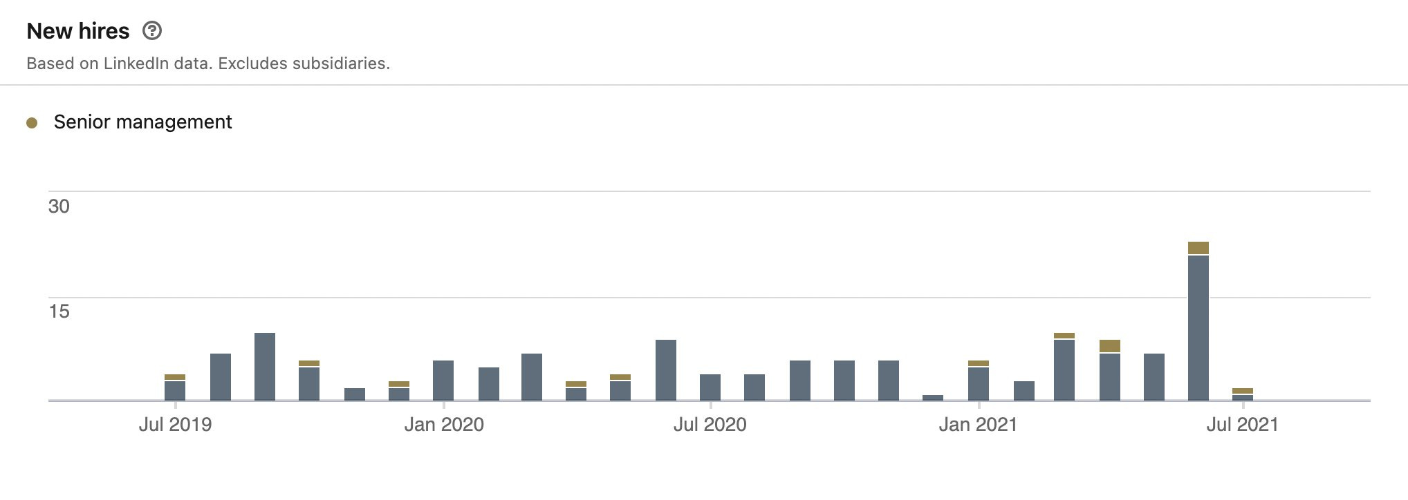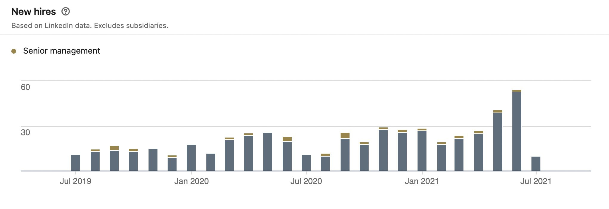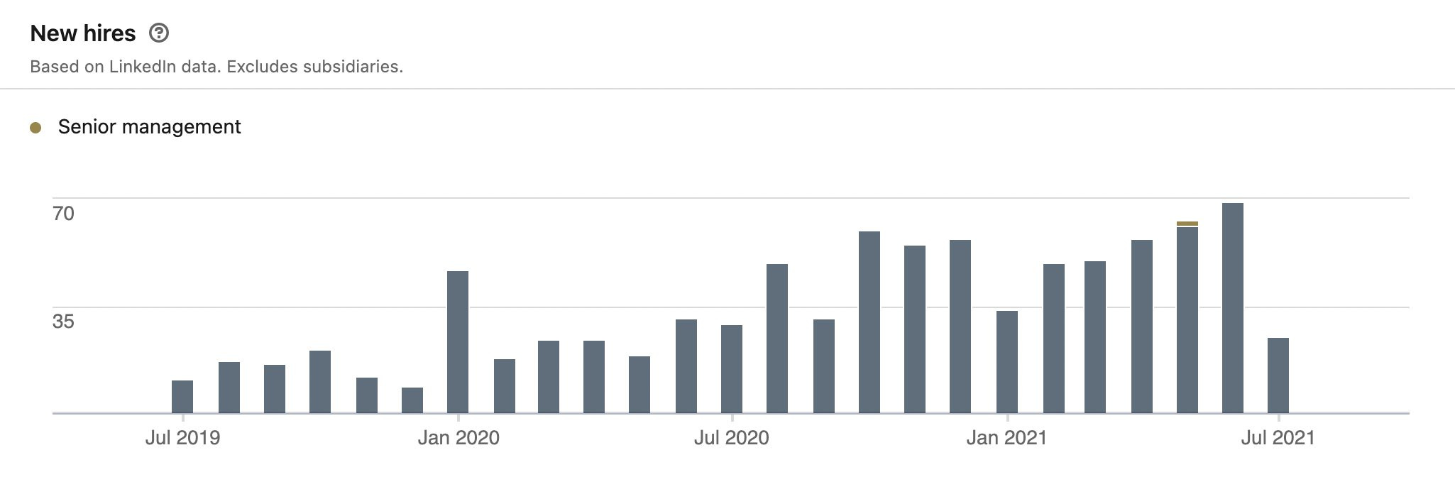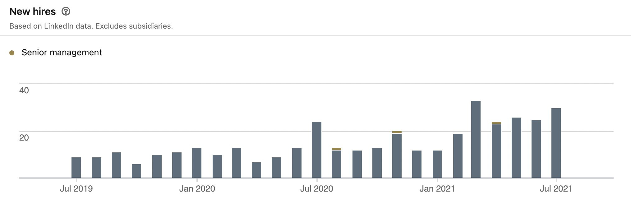 Steady rate of new hires over the last 18 months with a big increase last summer