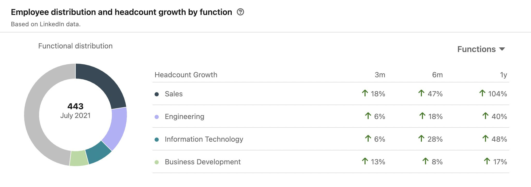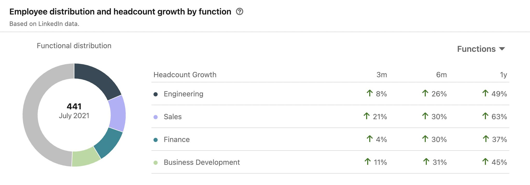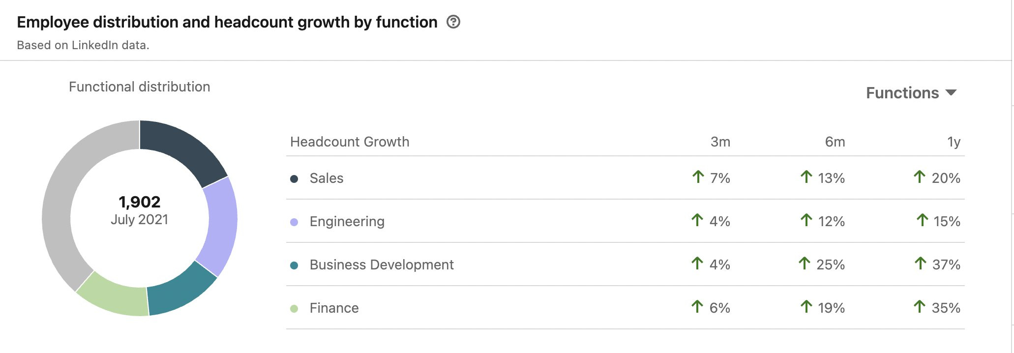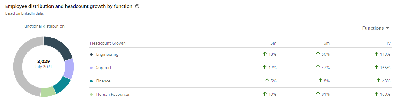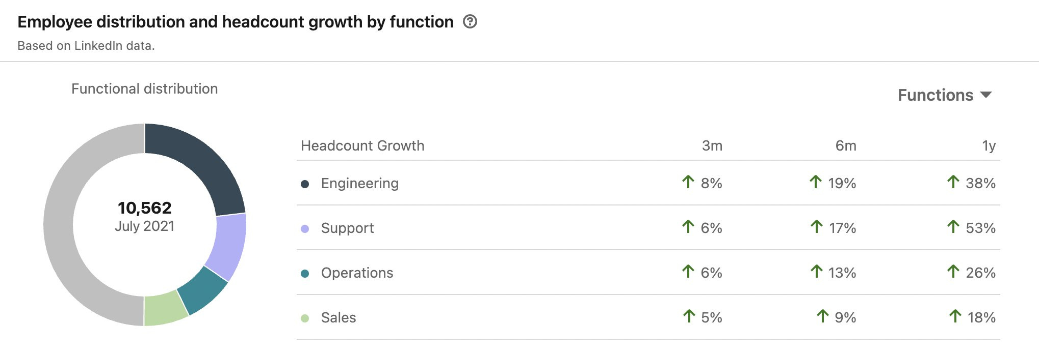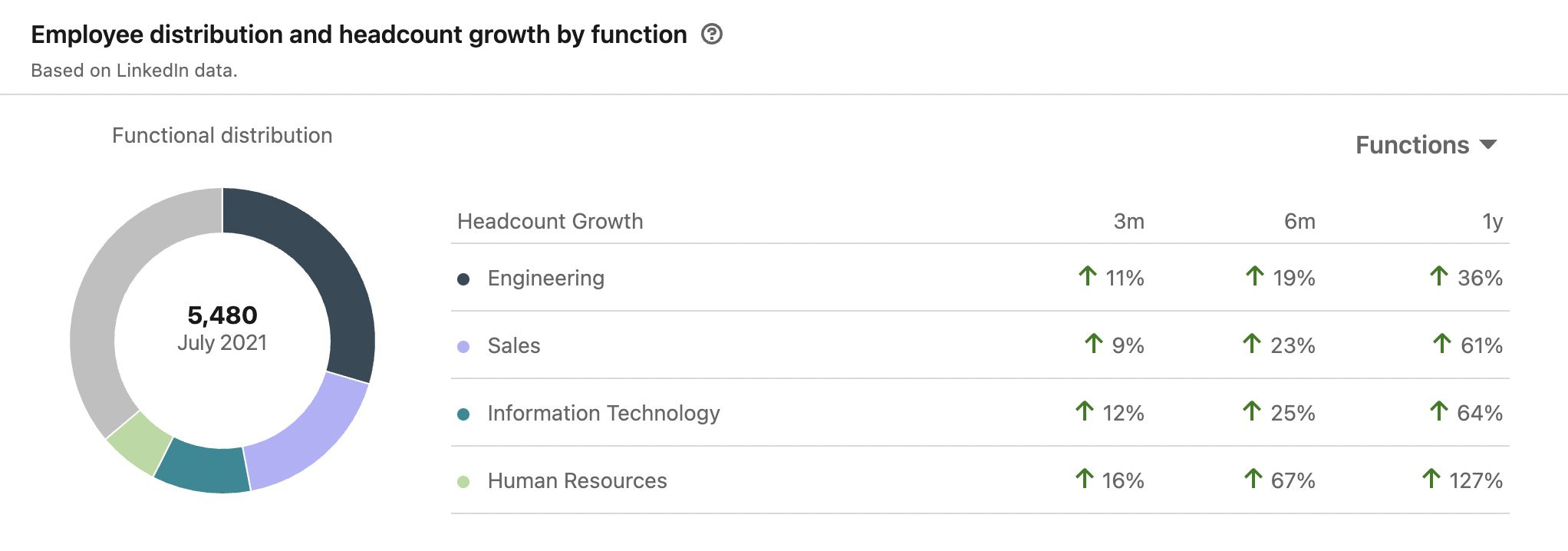 Very clean company headcount distribution with double digit six month department headcount growth across board