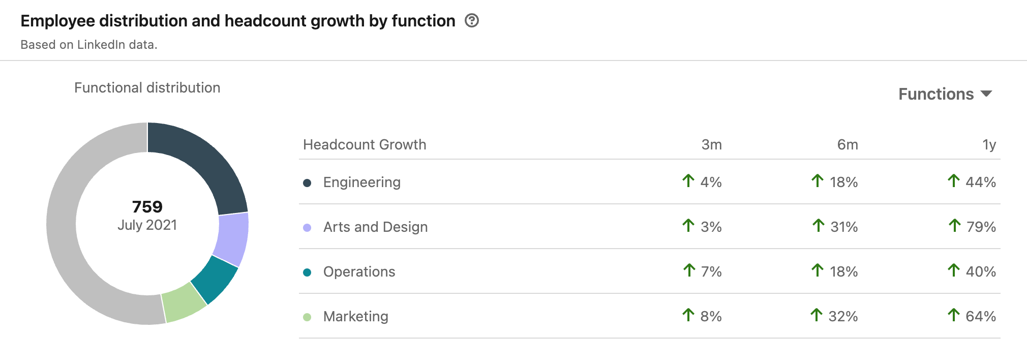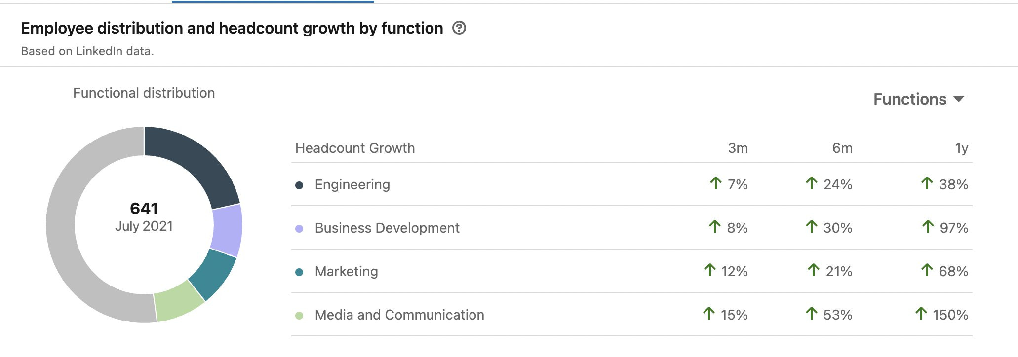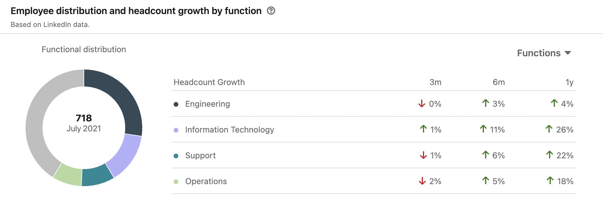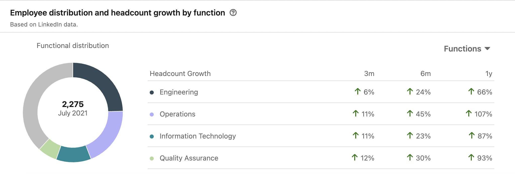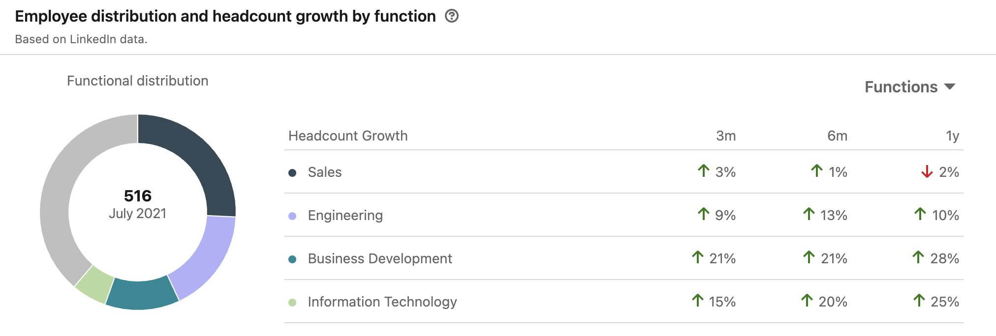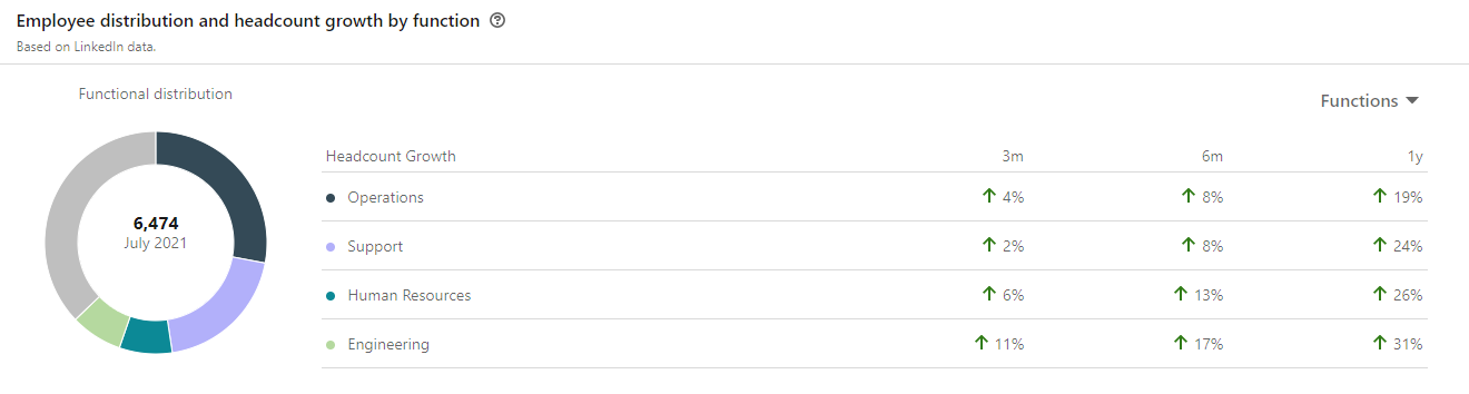 Very clean company headcount distribution with double digit six month department headcount growth across board