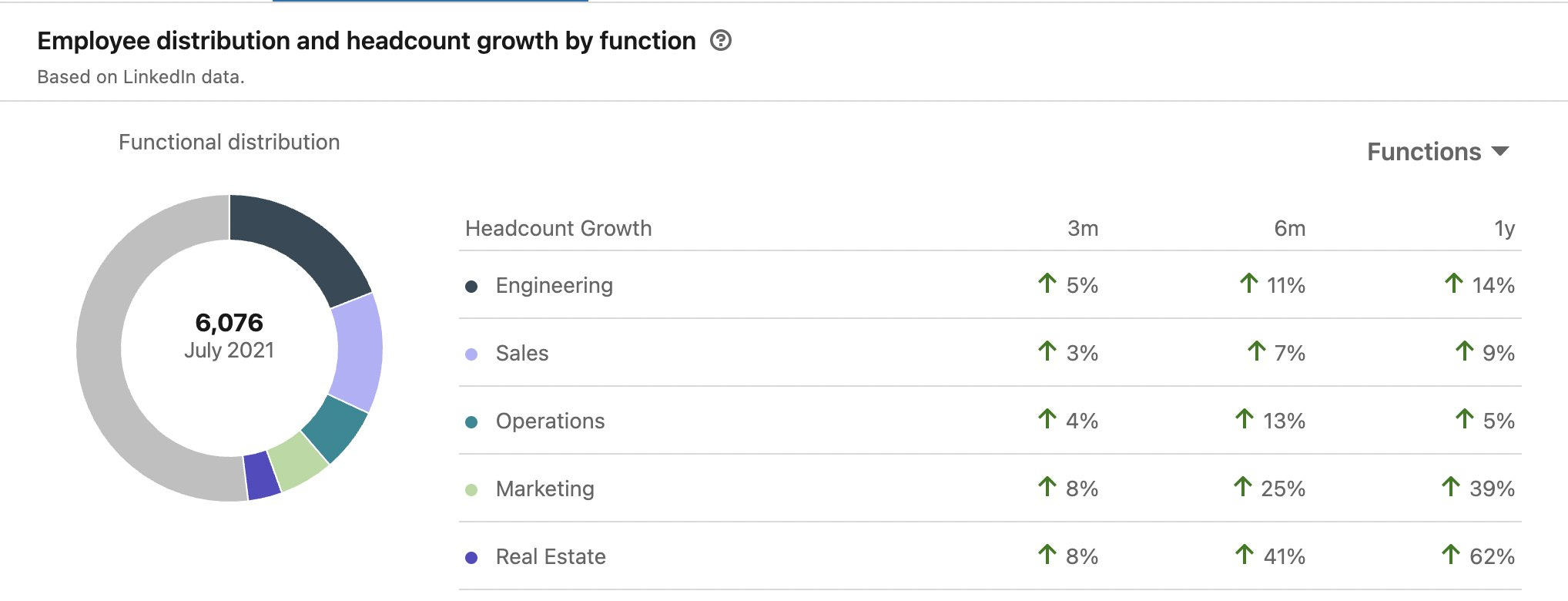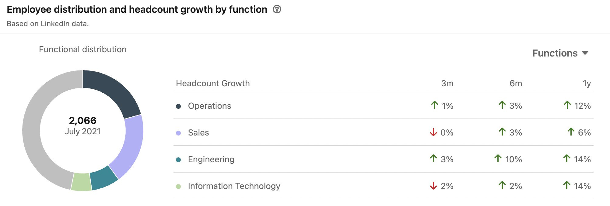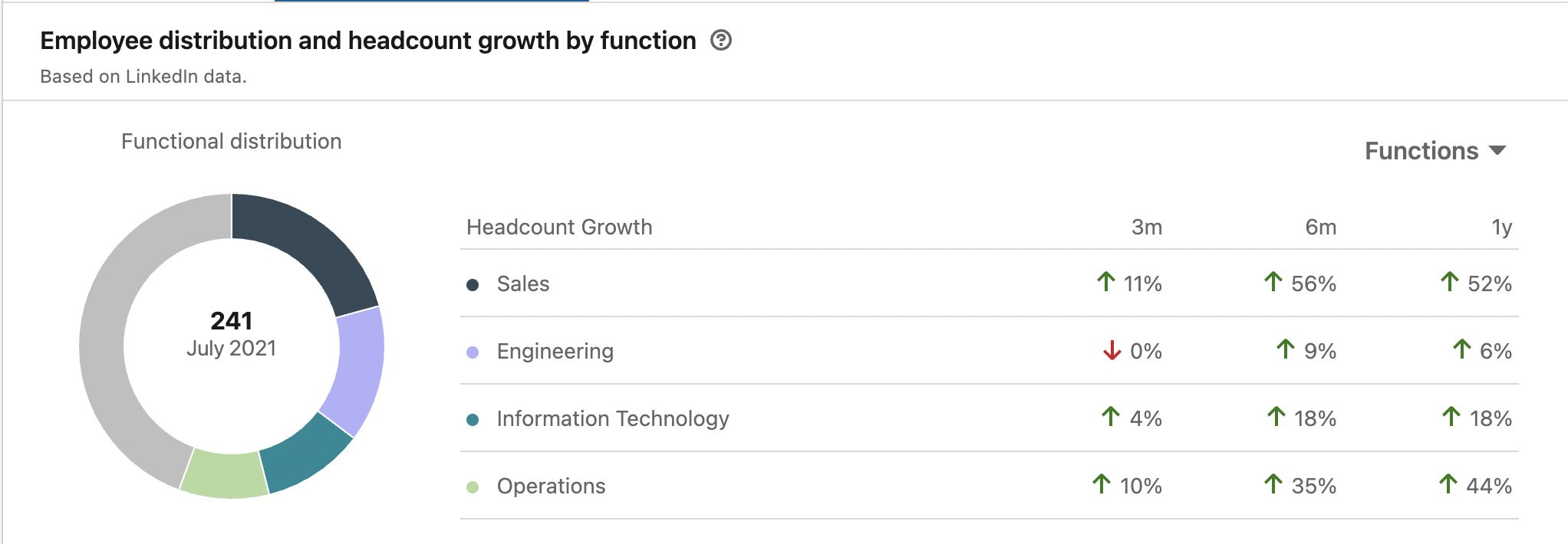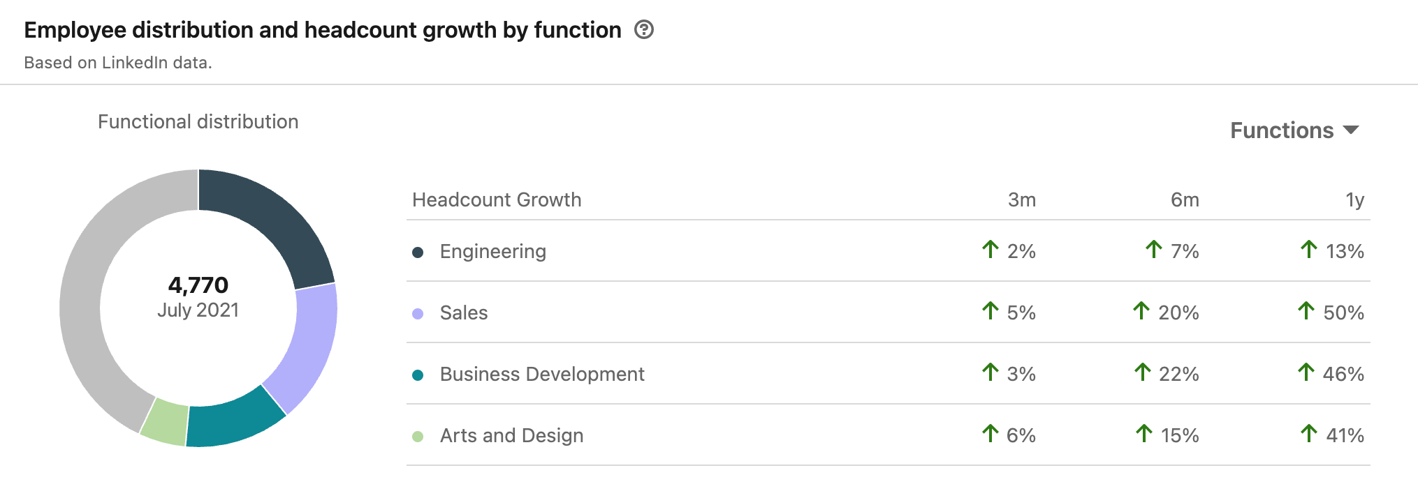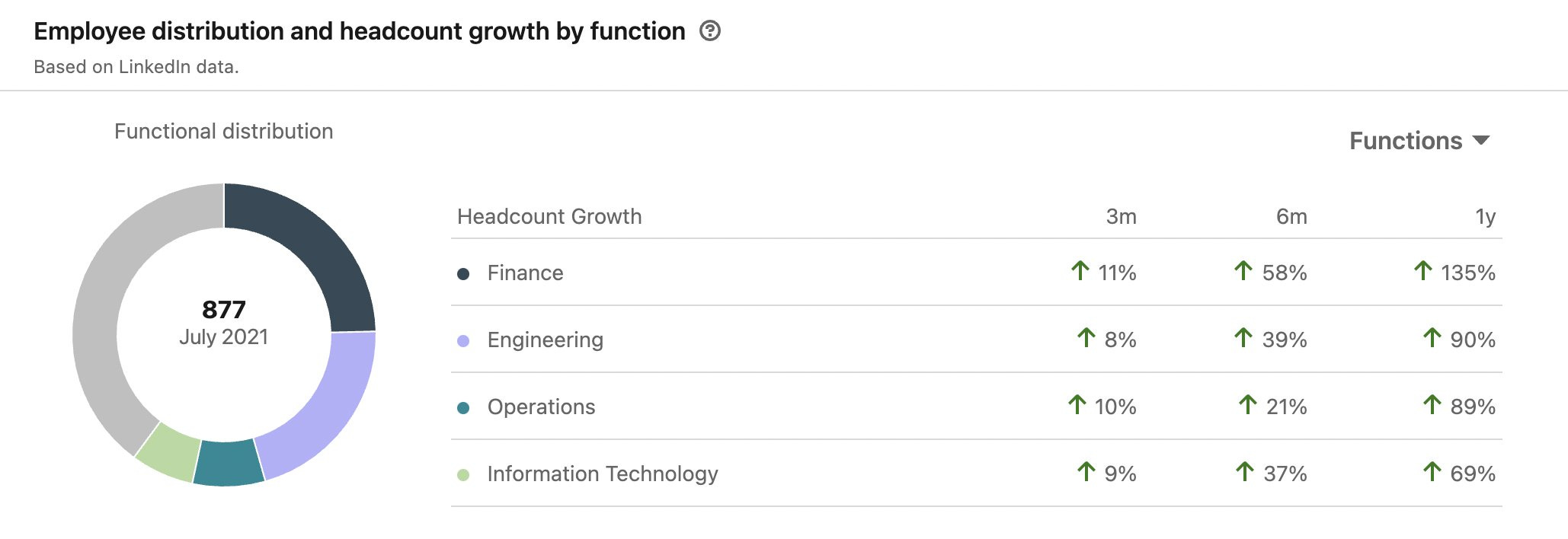 Very clean company headcount distribution with double digit six month department headcount growth across board