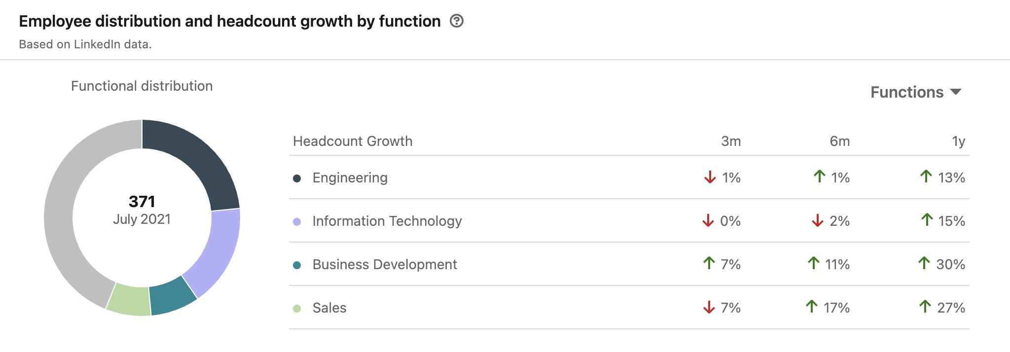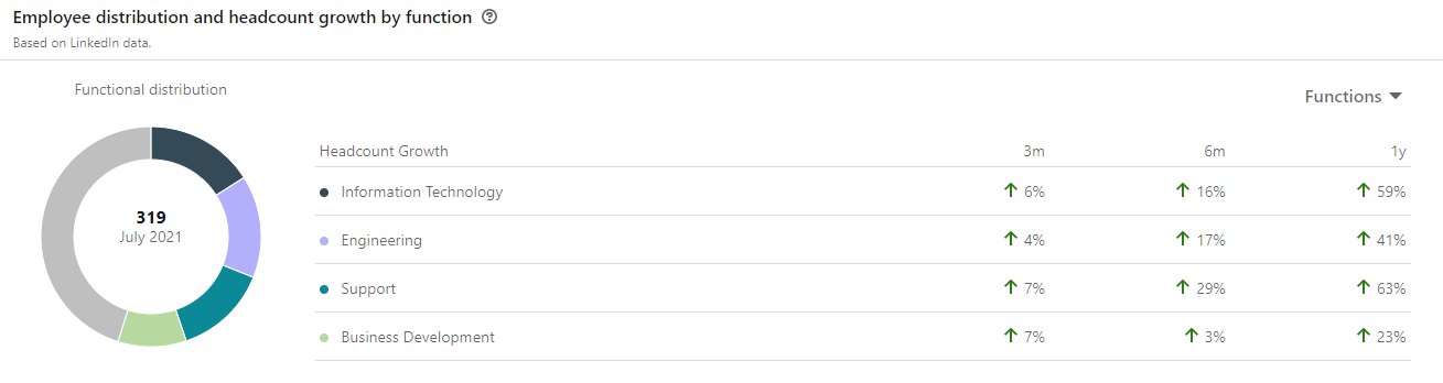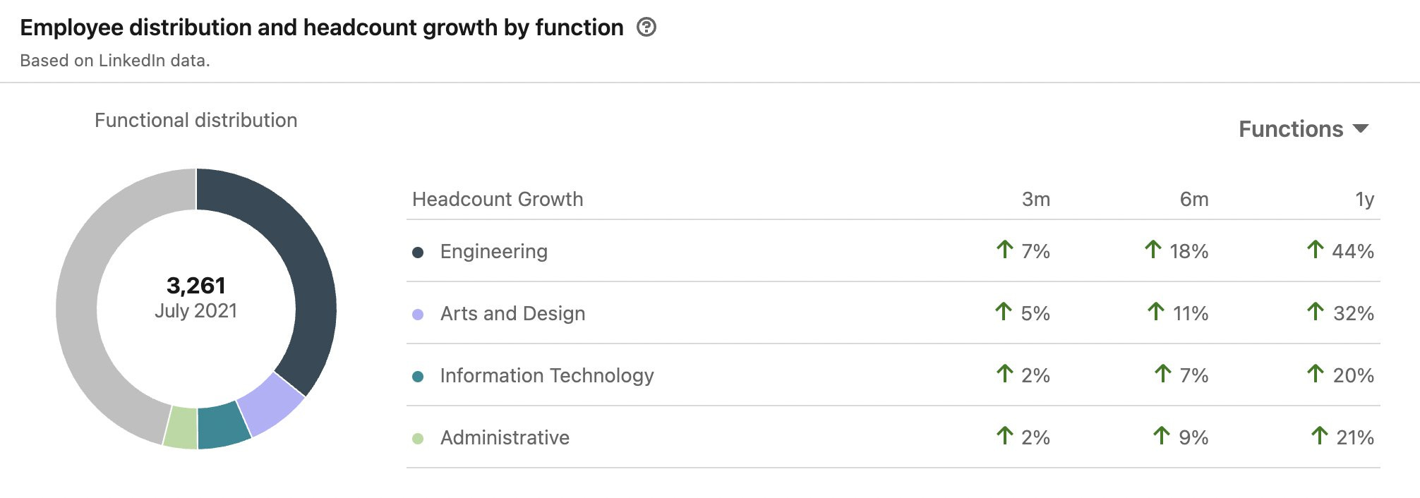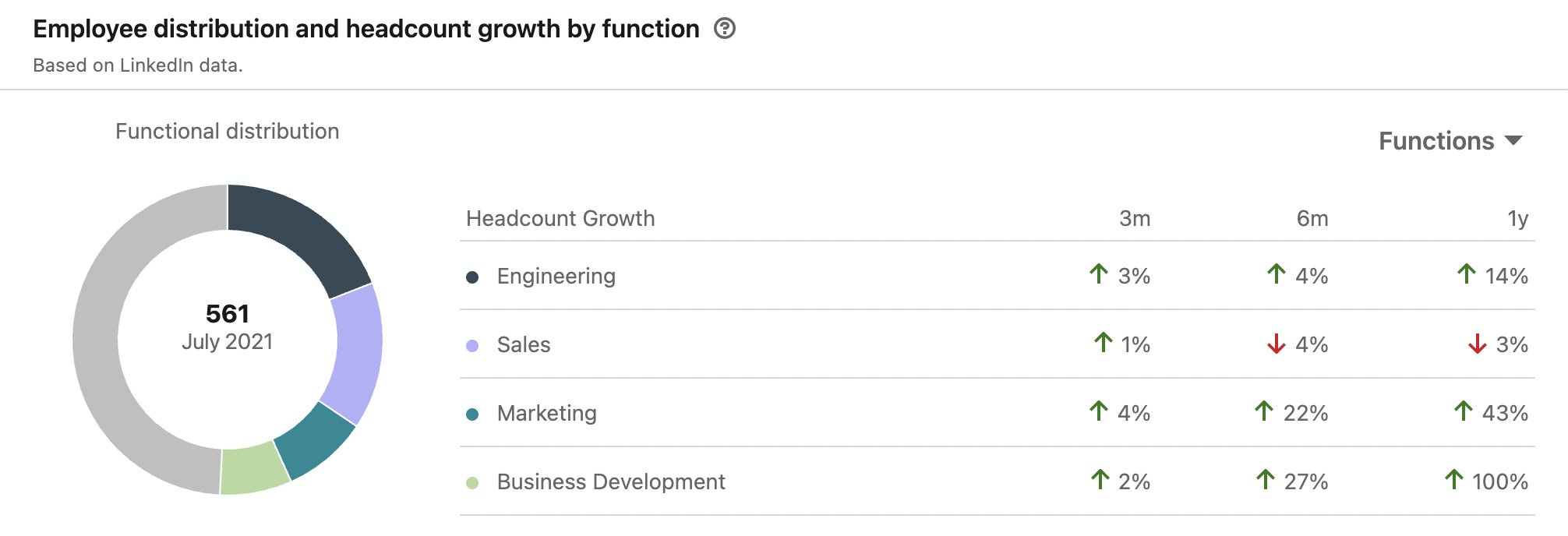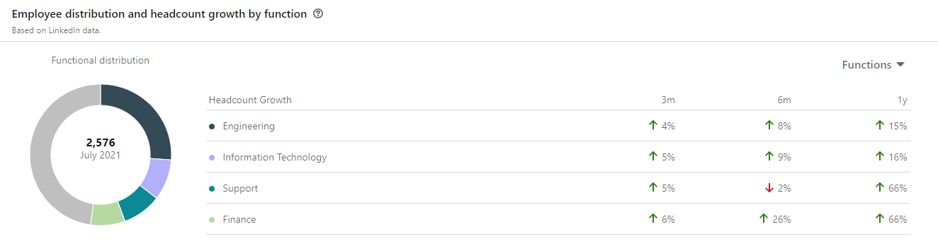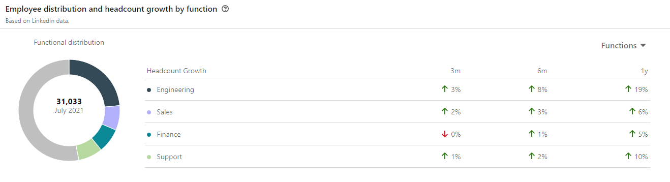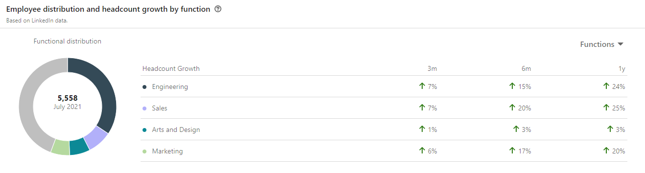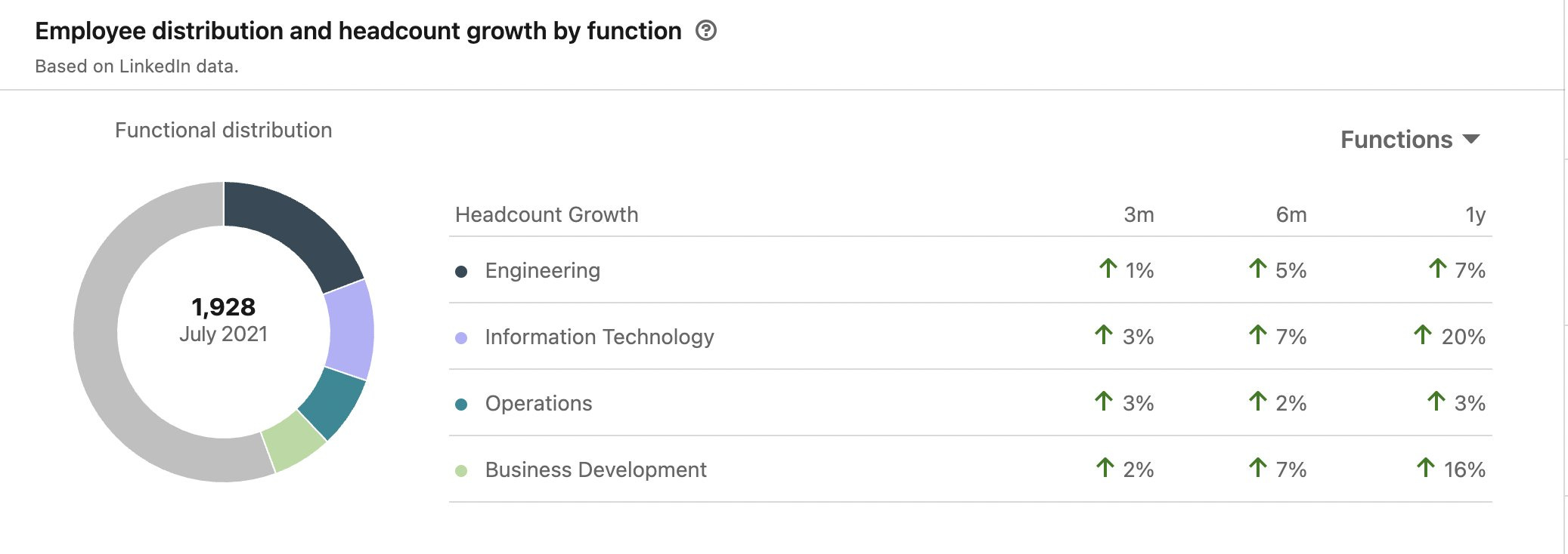 Very clean company headcount distribution with double digit six month department headcount growth across board