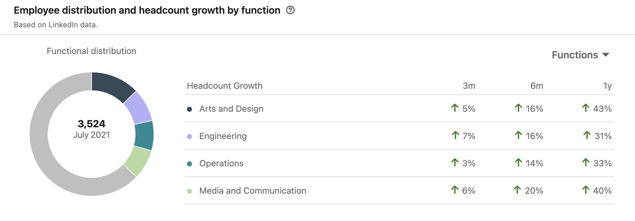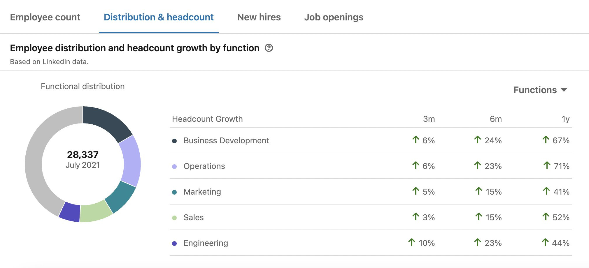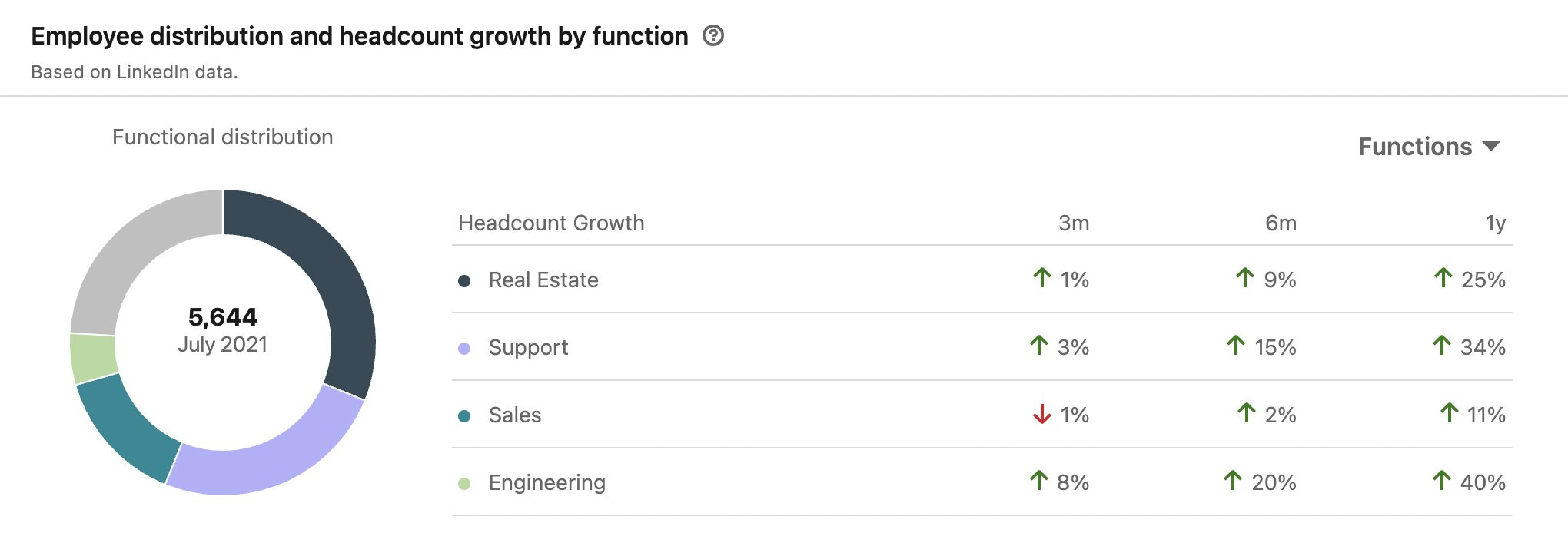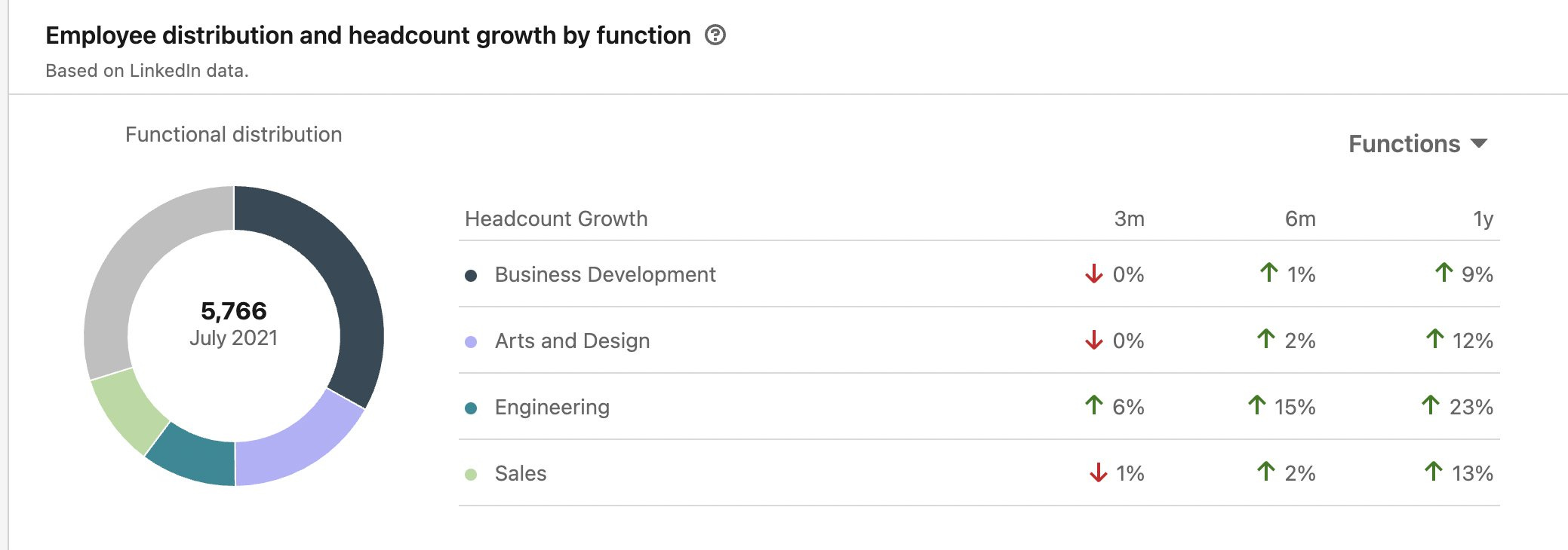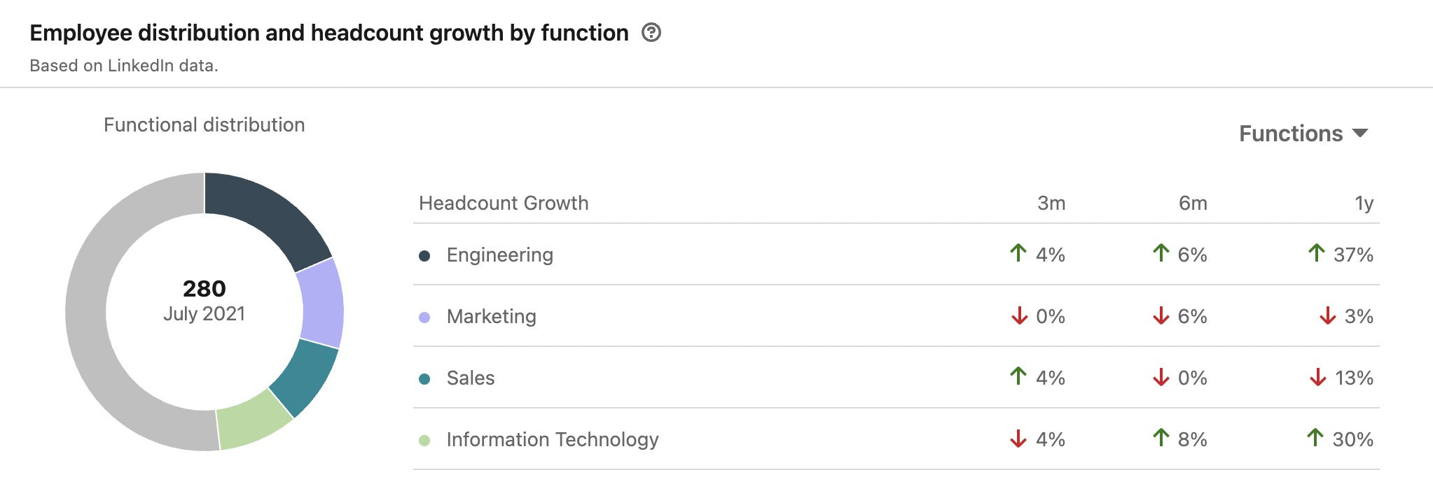 Very clean company headcount distribution with double digit six month department headcount growth across board