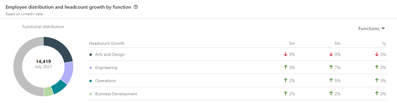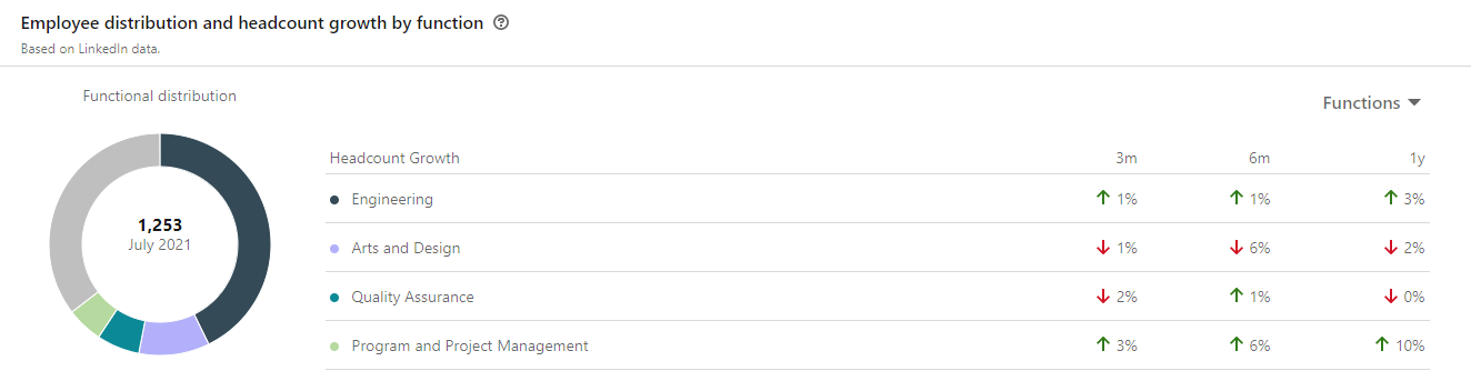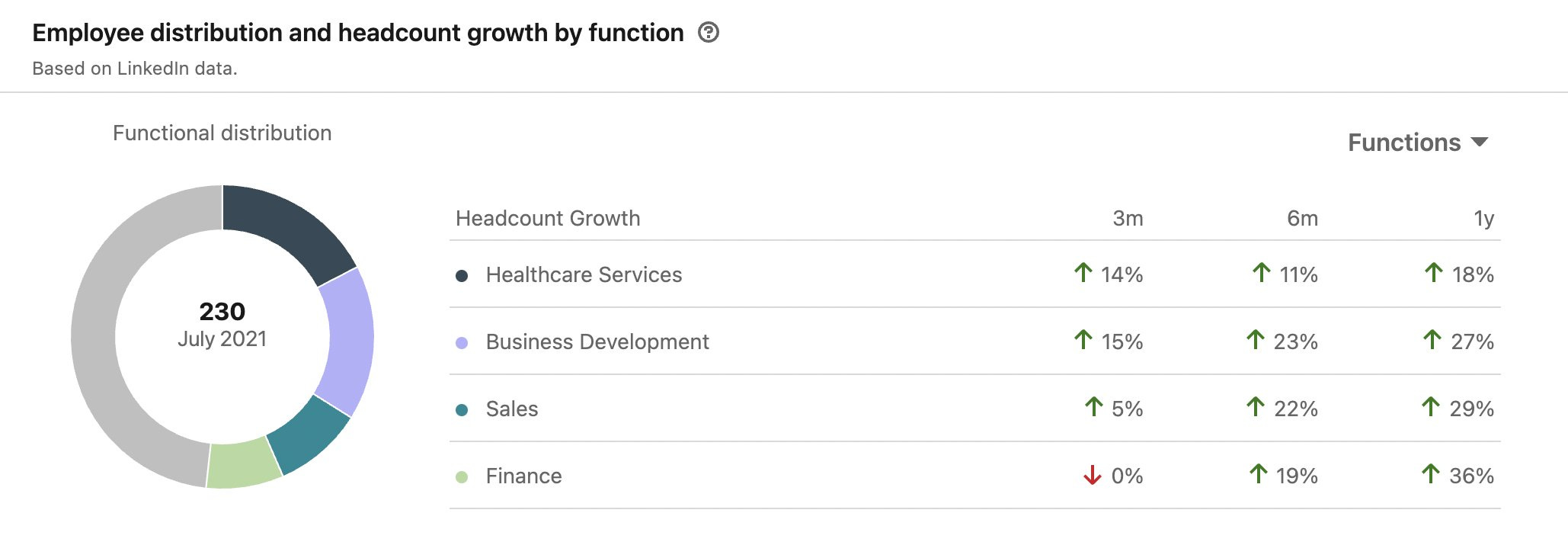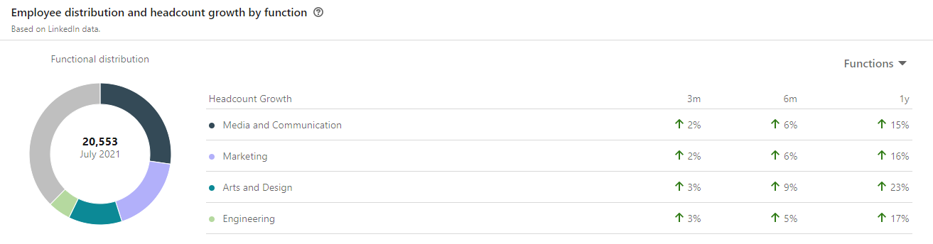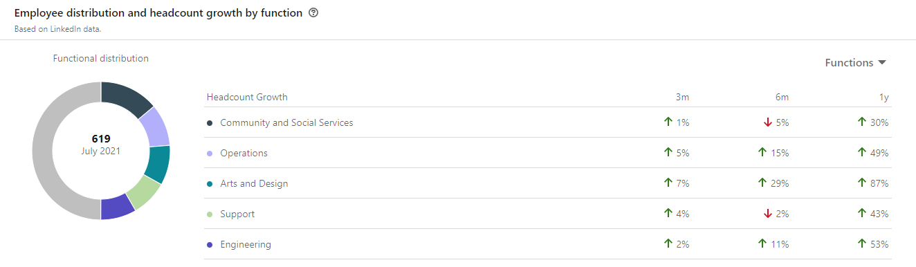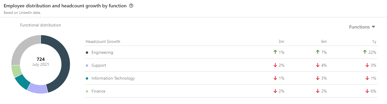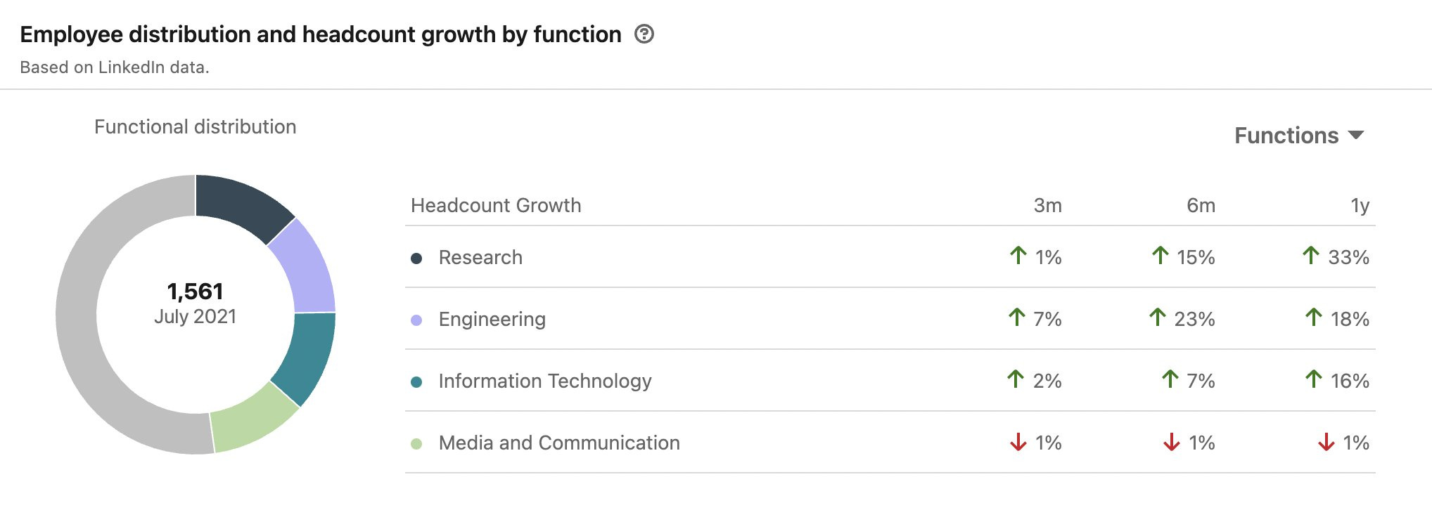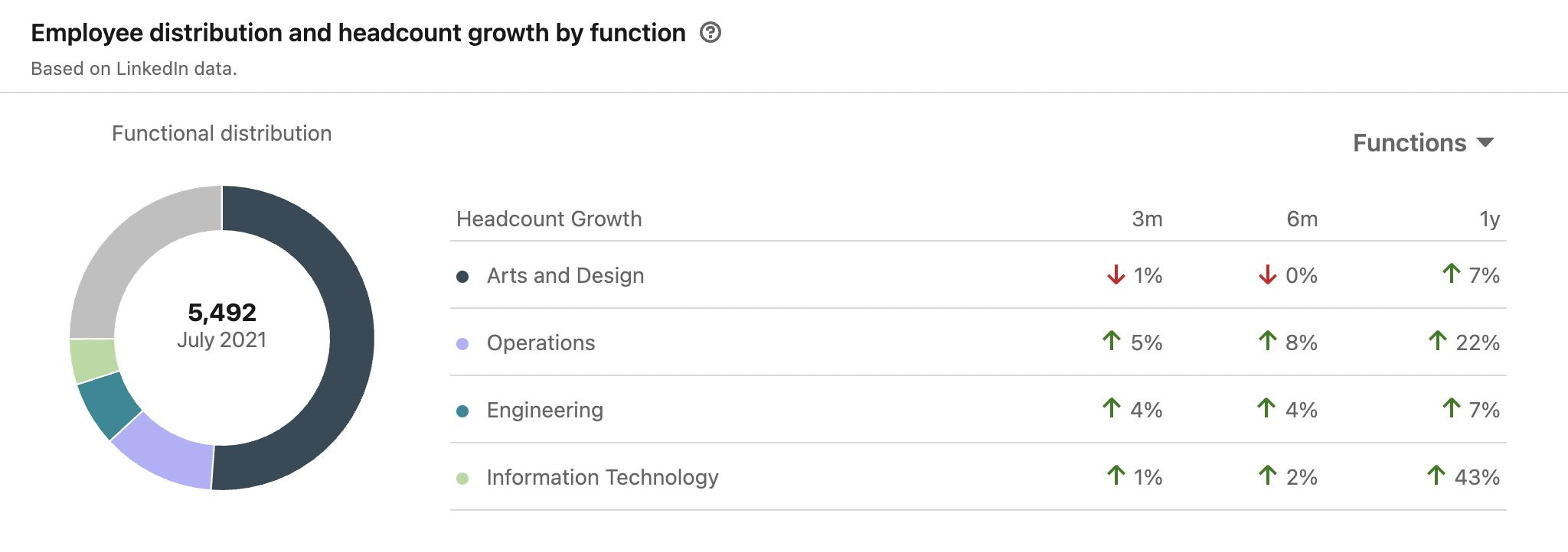 Very clean company headcount distribution with double digit six month department headcount growth across board