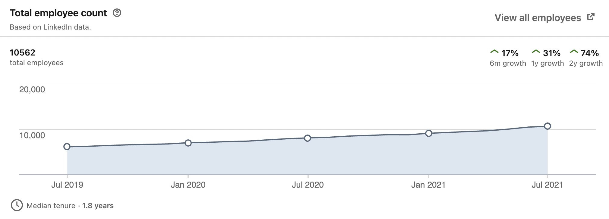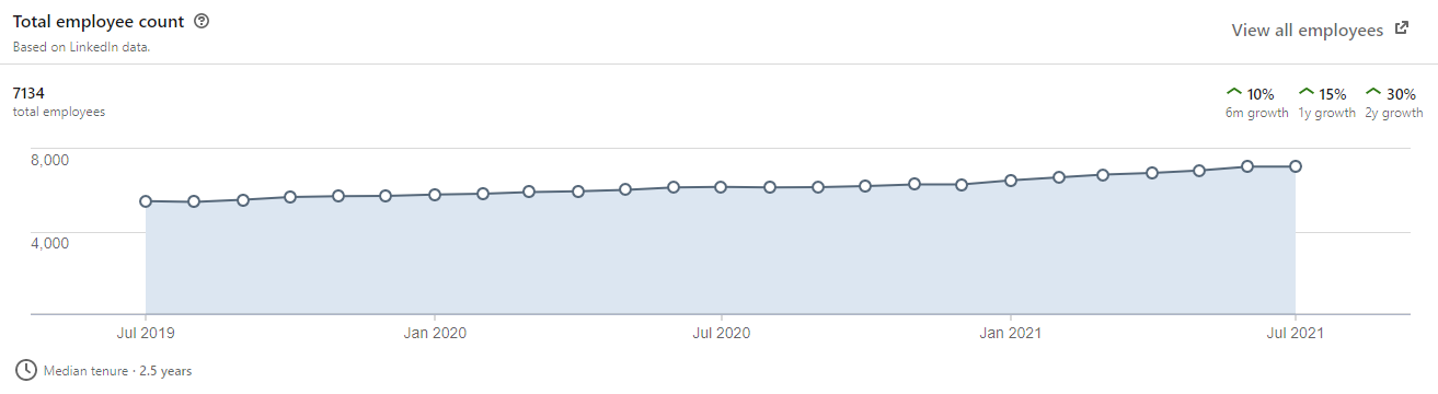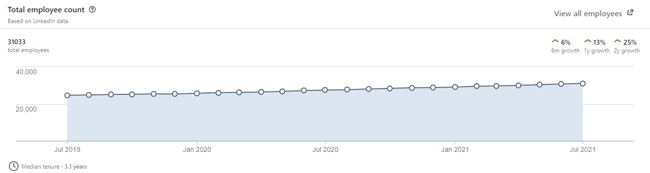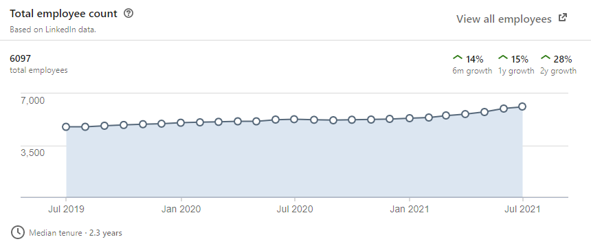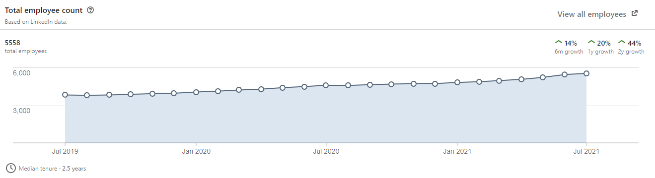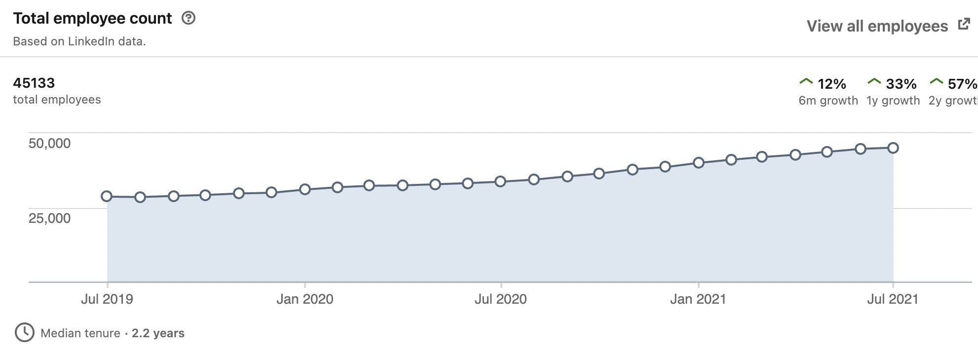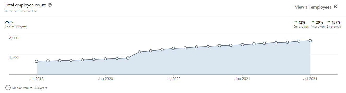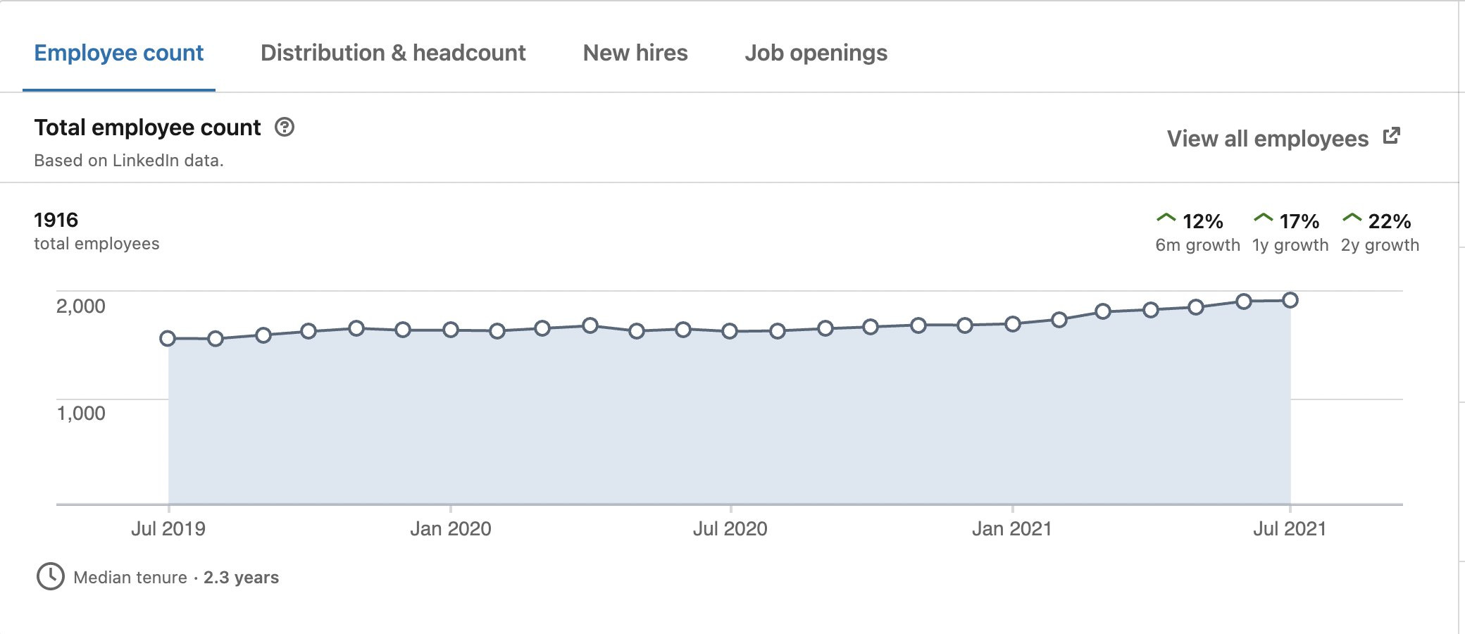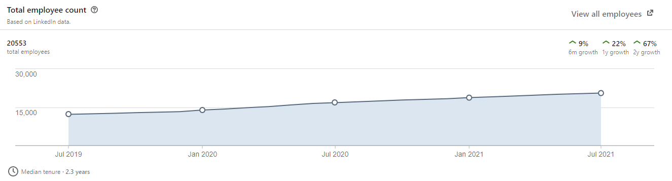 Before COVID looks like they were really ramping up hiring people on the hiring distribution chart