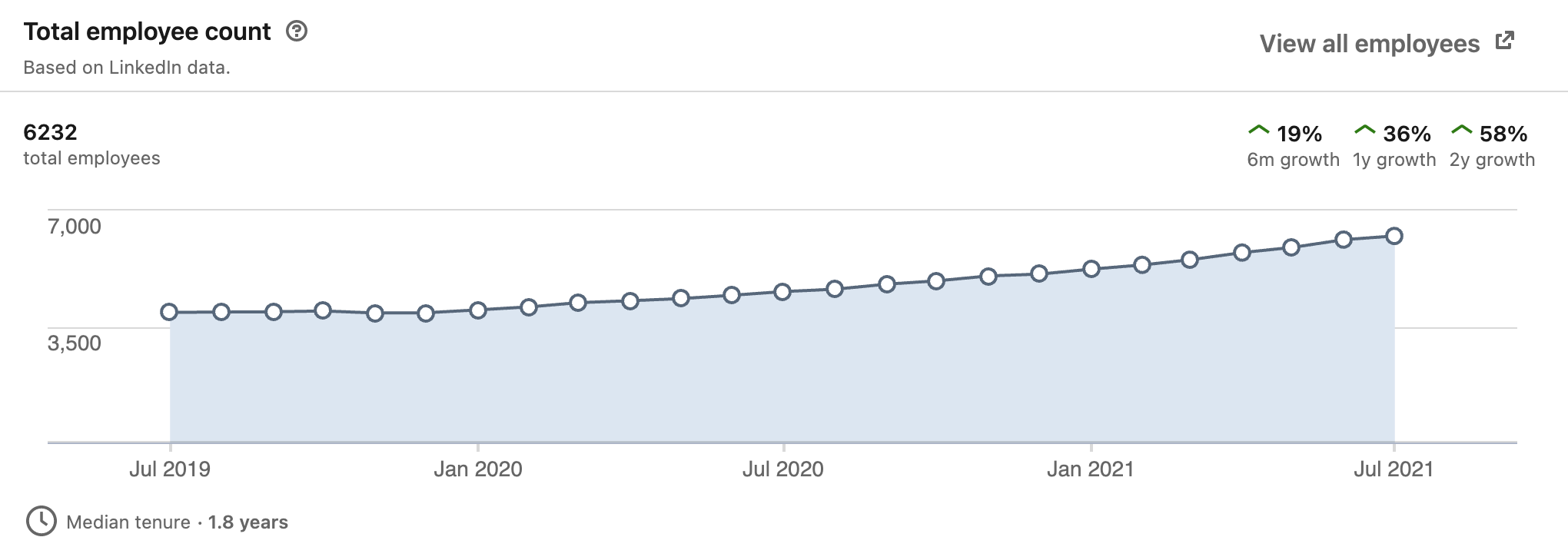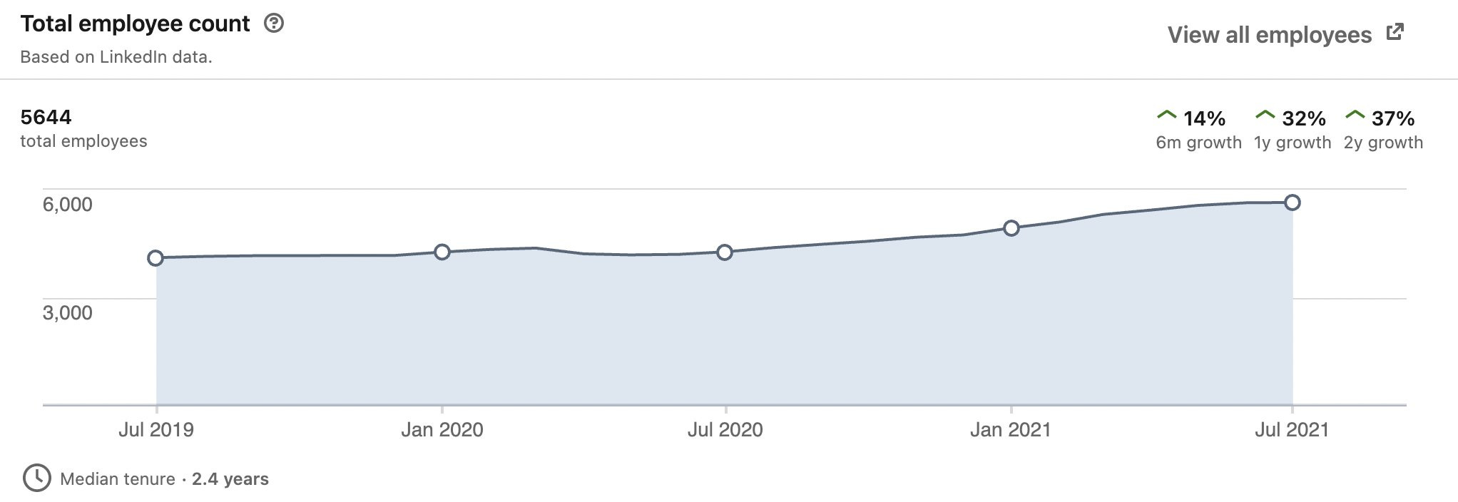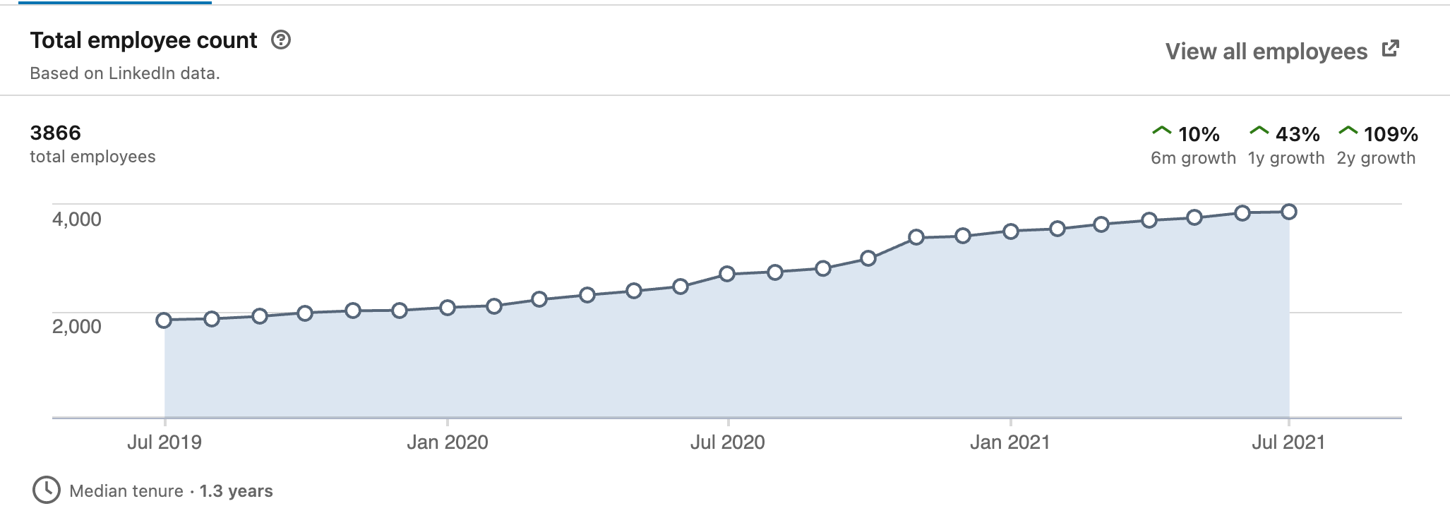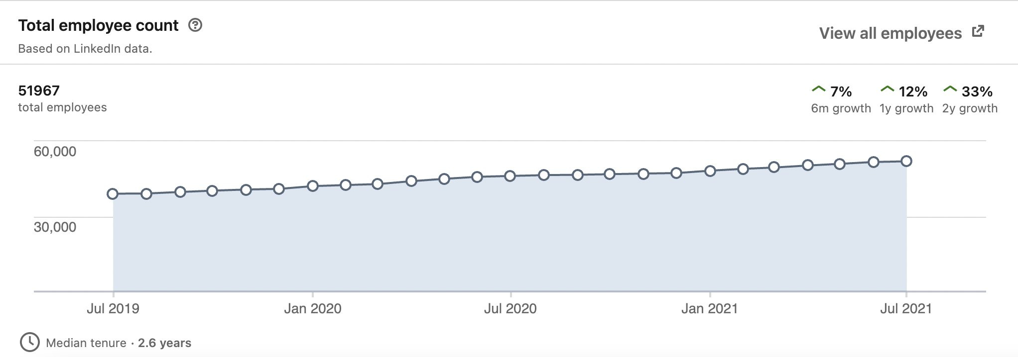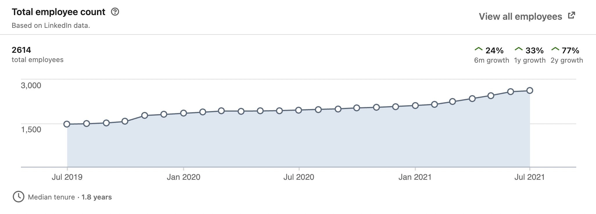 Before COVID looks like they were really ramping up hiring people on the hiring distribution chart
