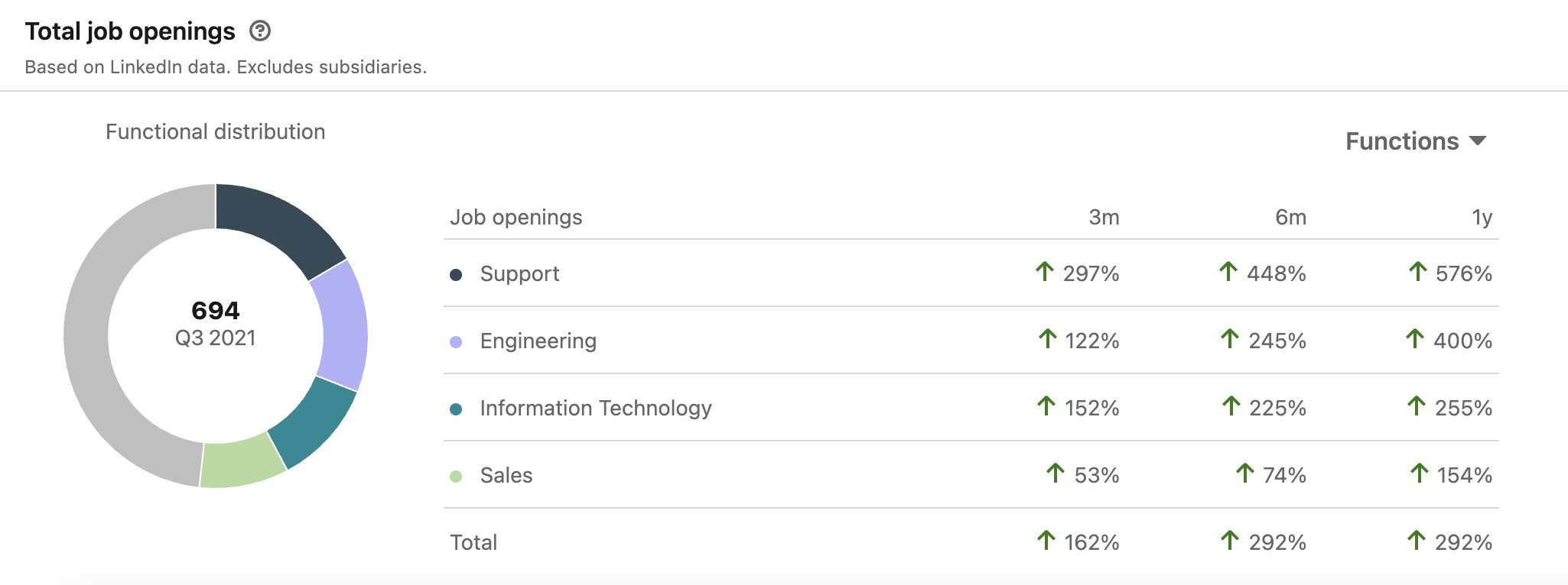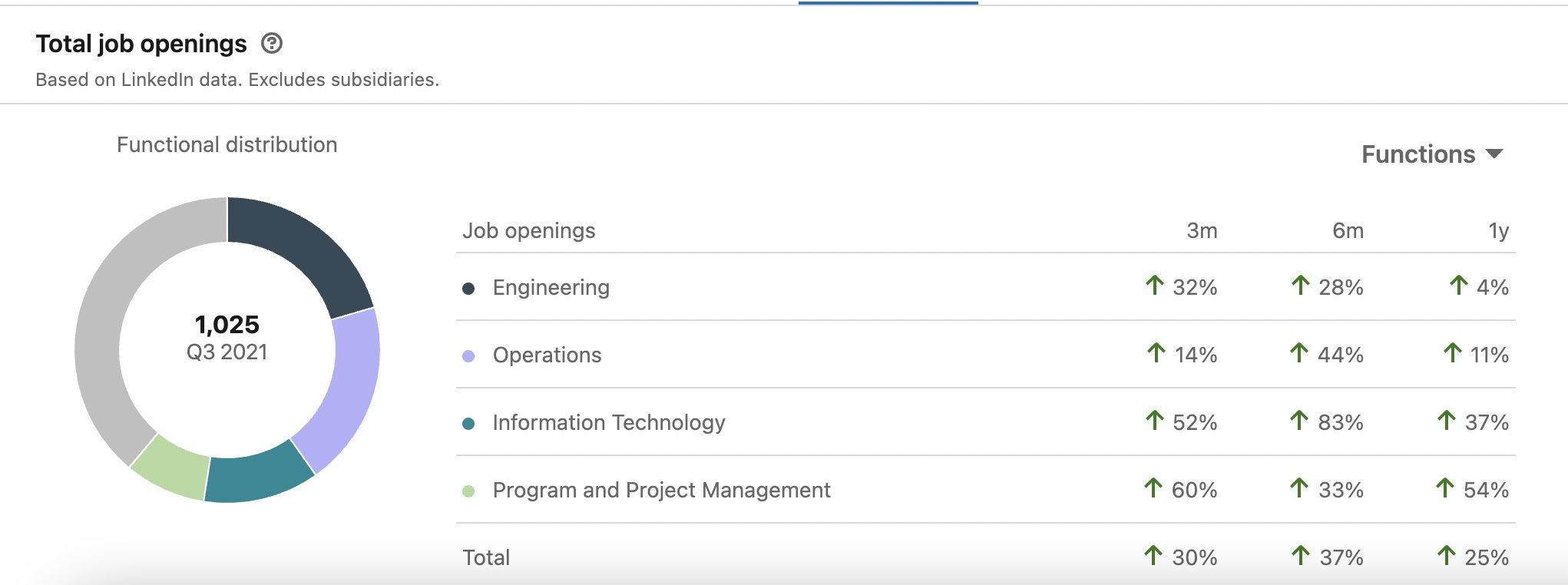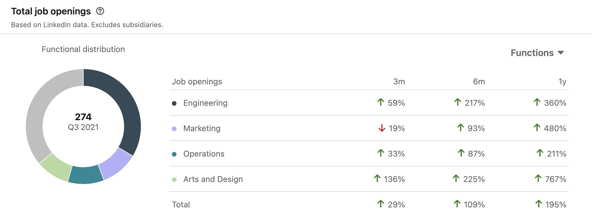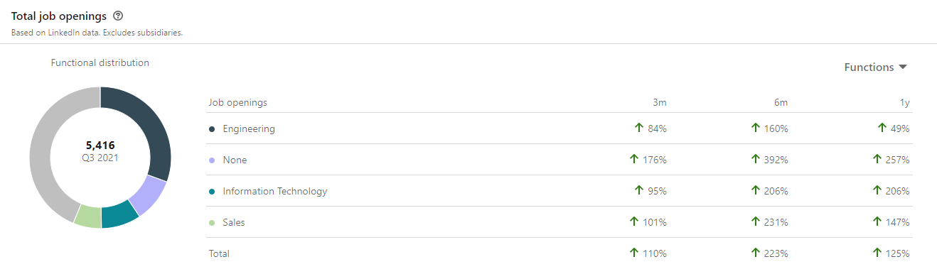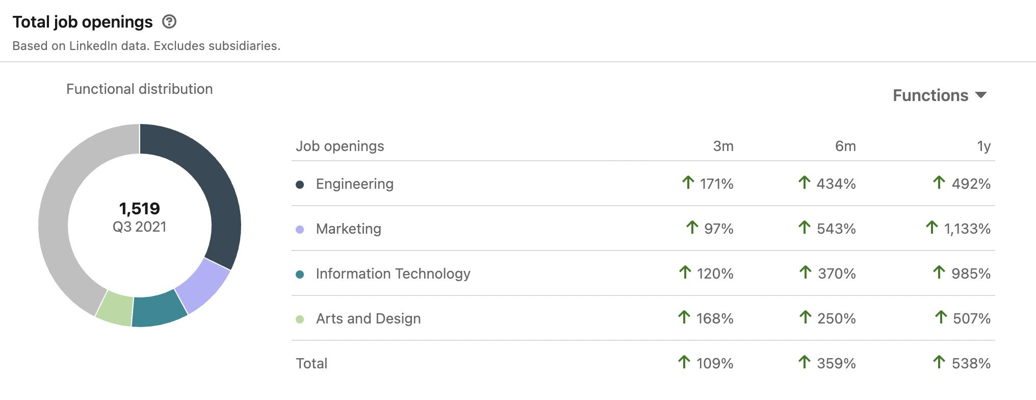 Triple digit growth in engineering and marketing job listings over the last 3 months