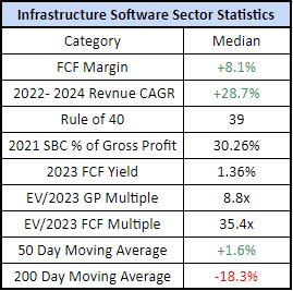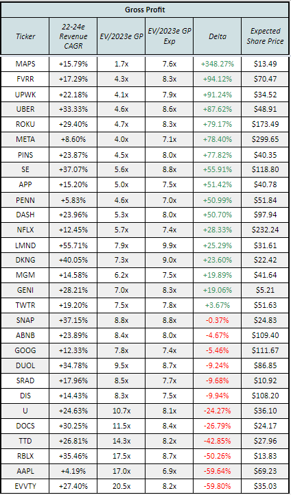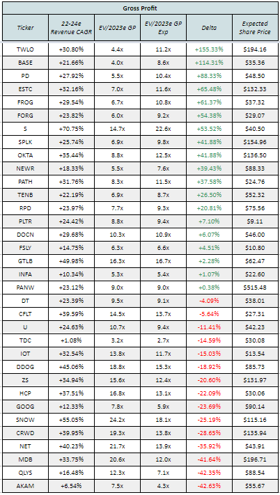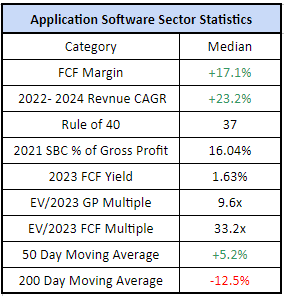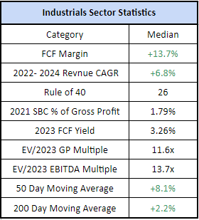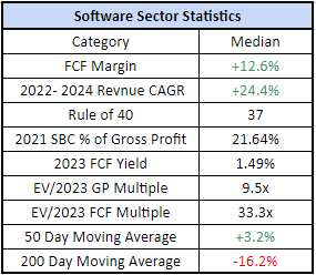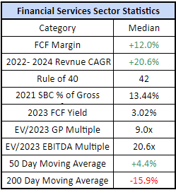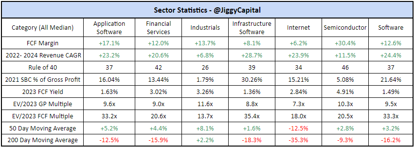Sector Stats: I’ll be highlighting the various sector’s median 2021-2023 revenue CAGR, gross margins, EV/2022e GP and EV/2022e EBITDA multiples.