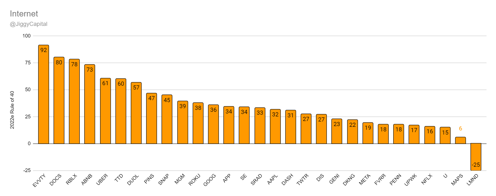 Best 2022e Rule of 40 Score: Evolution Gaming — 92
