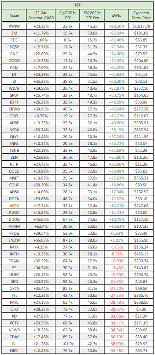 2022-2024 Revenue CAGR vs EV/2023 FCF Multiple: