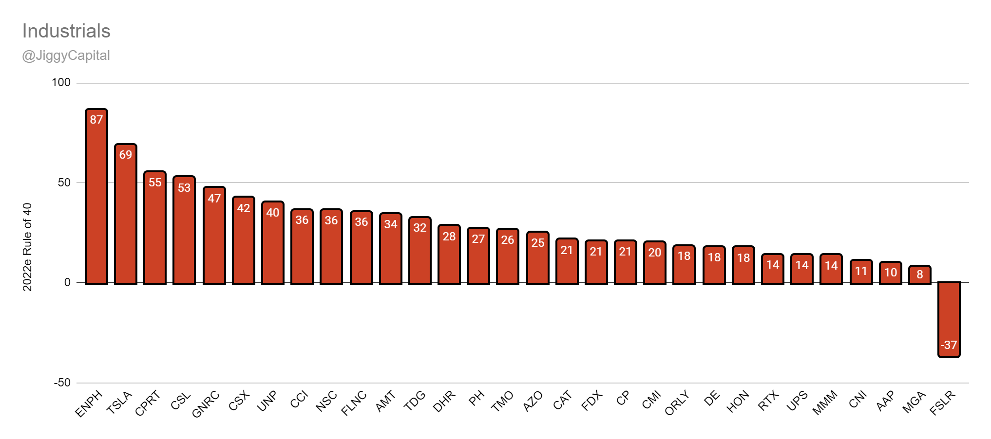 Worst 2022e Rule of 40 Score: First Solar — -37