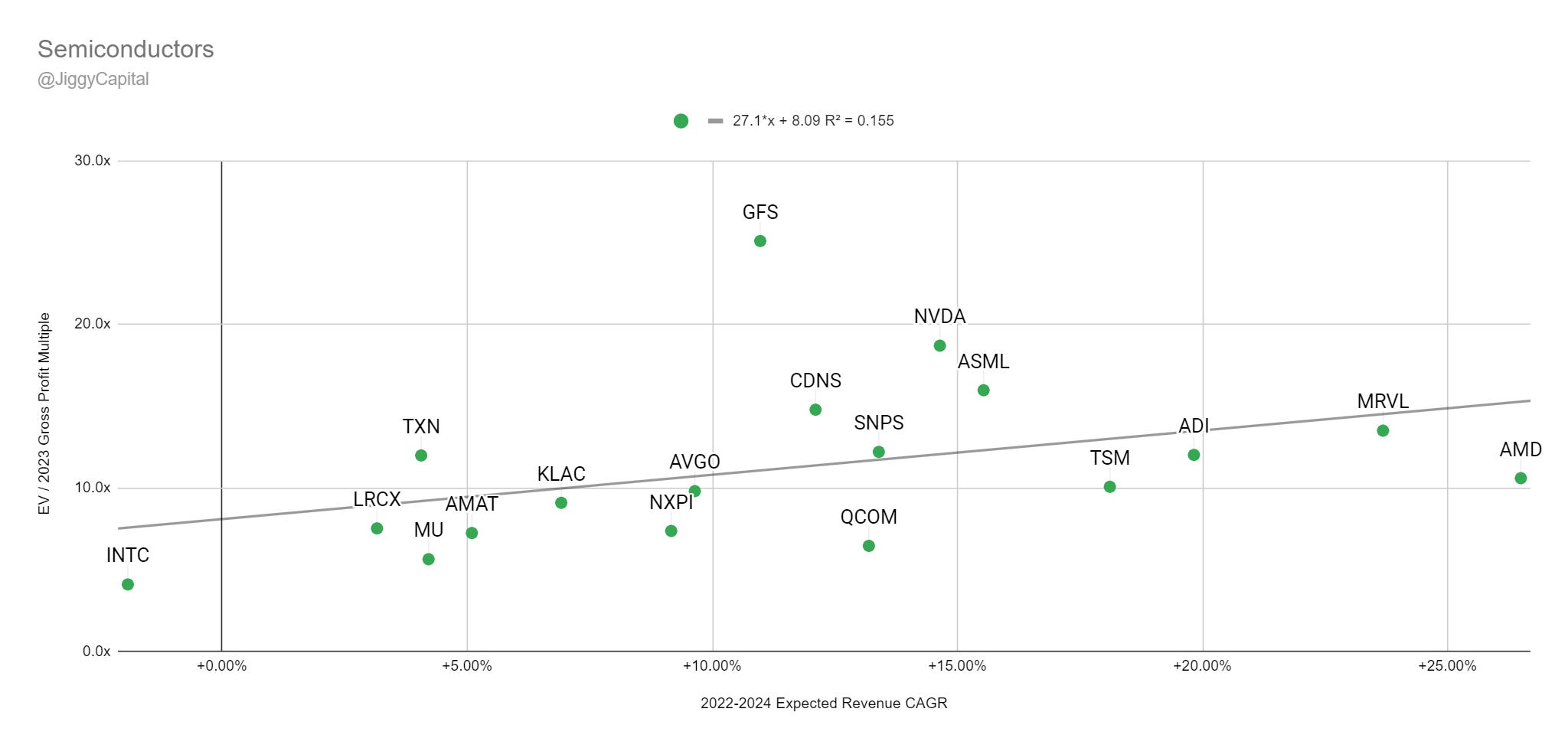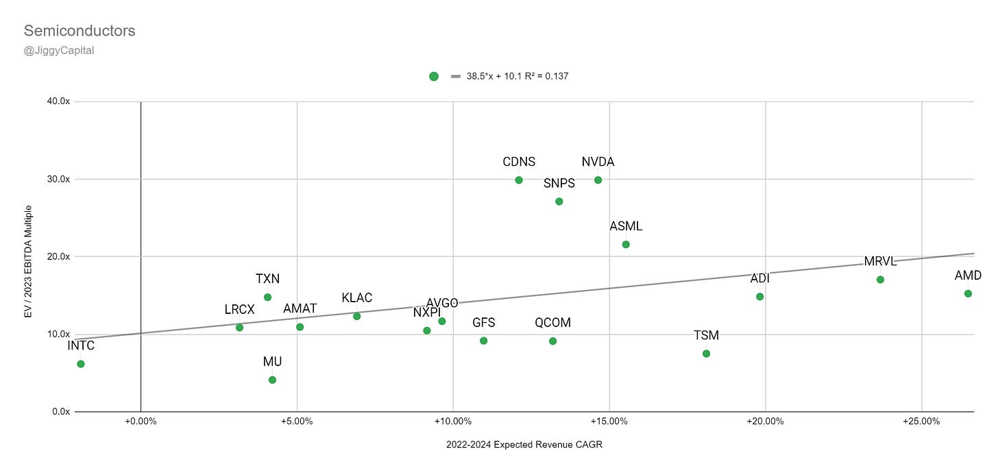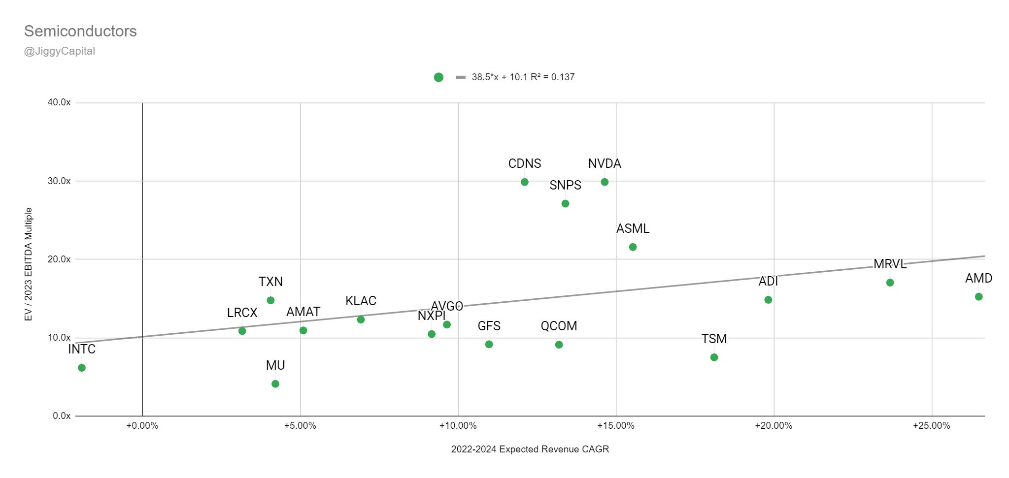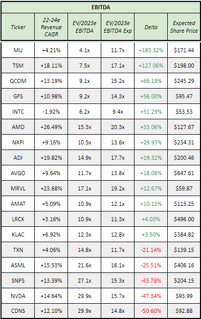 It’s pretty incredible to me that Nvidia has slashed their numbers to hard that now they have the lowest projected EBITDA margins for 2022!! Also worth mentioning that the EDA players (SNPS & CDNS) are more software companies serving the semiconductor industry so they’re not a perfect comp.