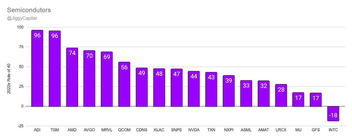 Best 2022e Rule of 40 Score: Taiwan Semiconductor & Analog Devices — 96