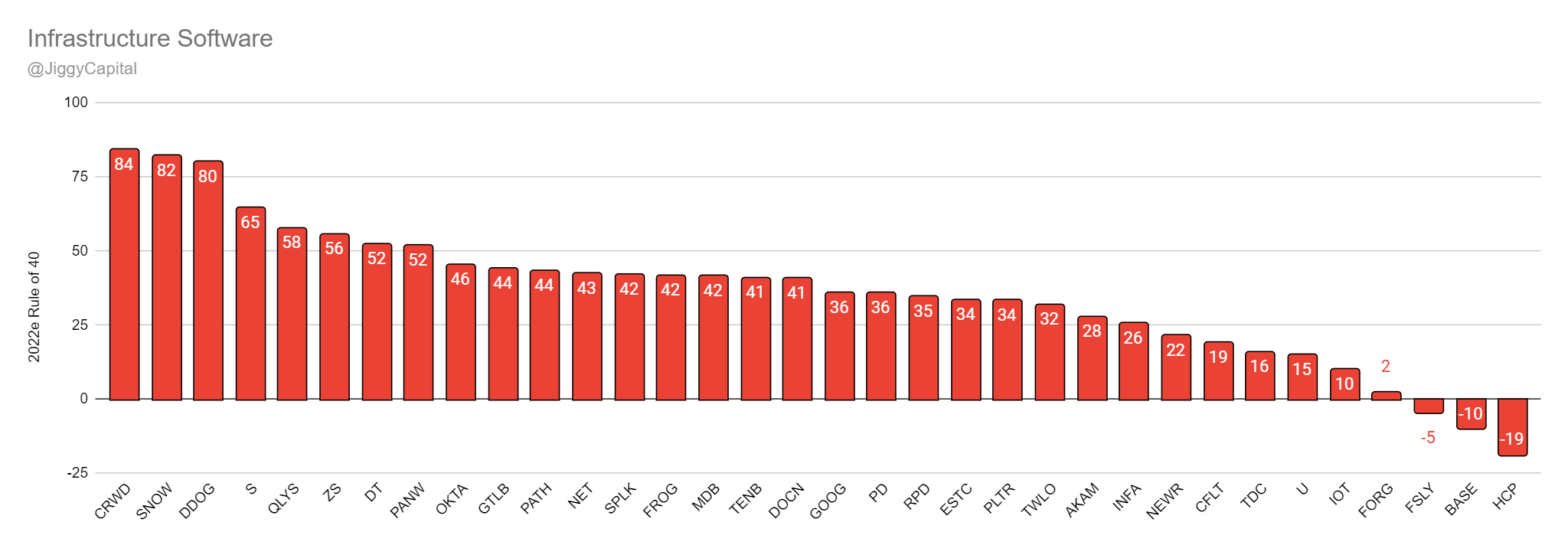 Best 2022e Rule of 40 Score: Crowdstrike — 83