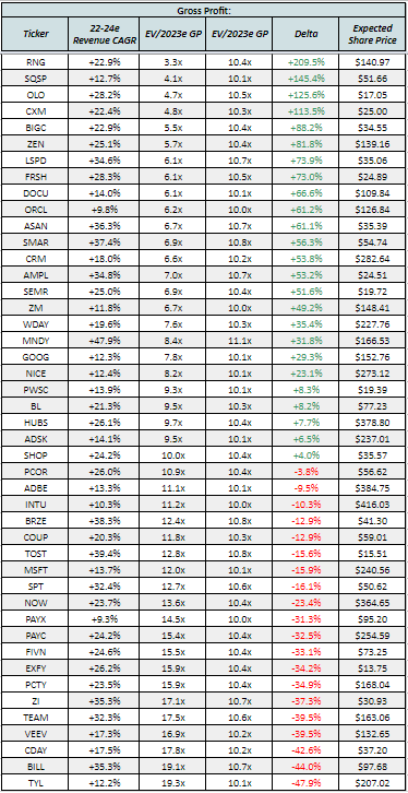 I find it pretty amusing that Bill.com and Tyler Technologies are duking it out for the highest EV/GP multiples of the group (yes there is context needed haha).